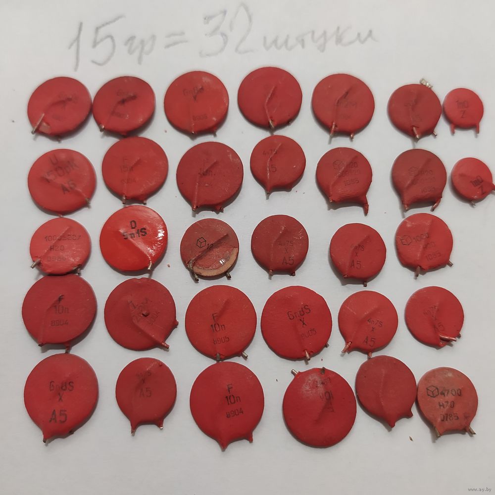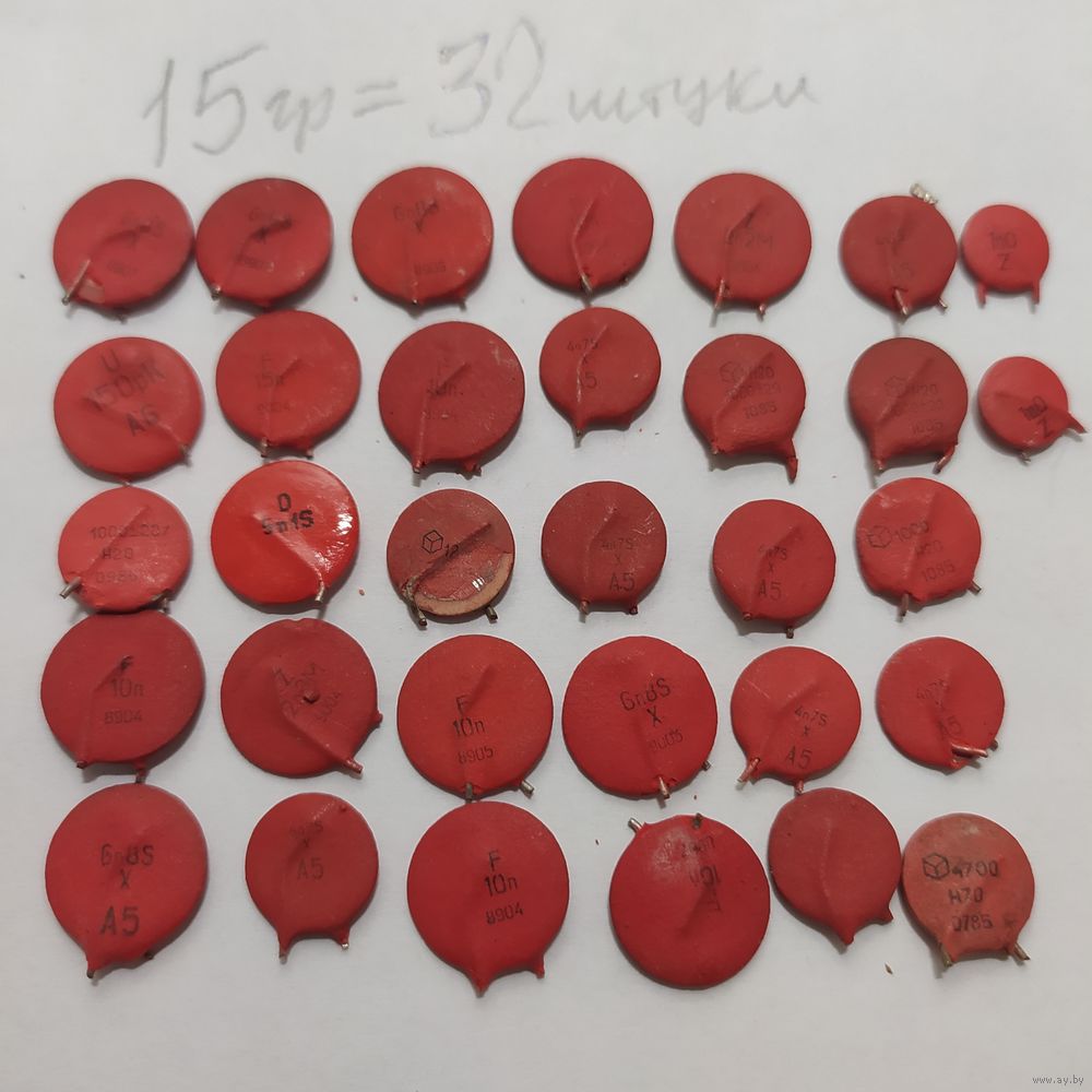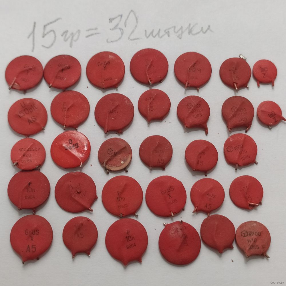 Красные, керамические конденсаторы КМ (дисковые), 32 шт.15 грамм...