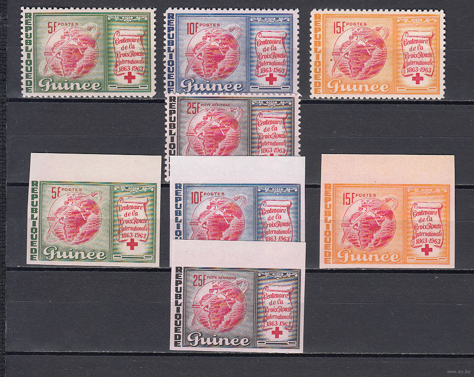 Красный крест. Космос. Гвинея. 1963. 4 марки (с/з и б/з). Lollini N 1400 GUI (56,5 е).