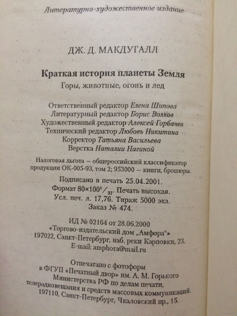 Краткая история планеты Земля: горы, животные, огонь и лед. Макдугалл Дж. Д. 2001г. 383стр.