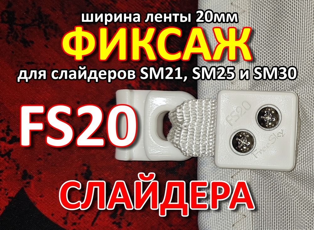 Фиксаж ползуна к парусу FreeSky FS20. Данное крепление позволяет быстро за 2 минуты установить слайдер на парус яхты без пришивания и установки люверсов. Под ленту шириной 20мм. Подходит к слайдерам FreeSky SM21, SM25 и SM30. Для грота площадью до 40 кв.м. и лодок длиной до 32 футов. Надёжное, простое и быстрое крепление. Для установки на новые паруса и для перехода с ликтроса на использование слайдеров. Из инструмента нужна только крестовая отвёртка.