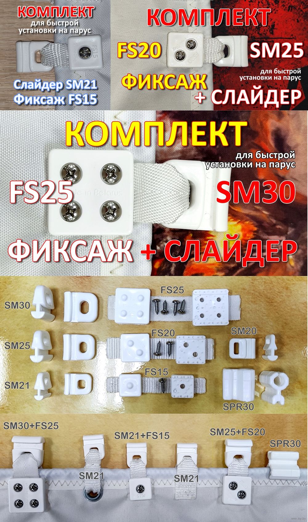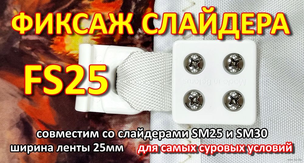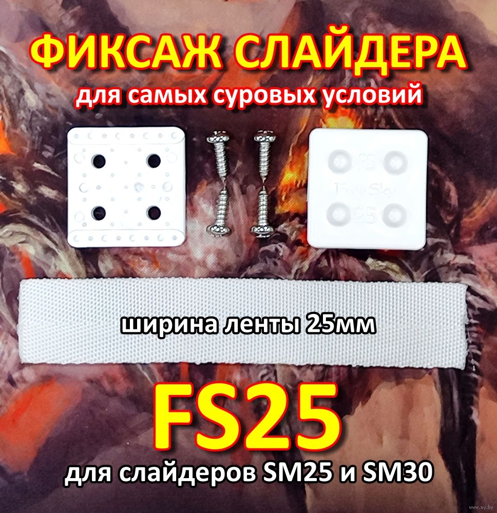 Комплектация: Крепеж из 2х деталей, четыре самореза из морской нержавеющей стали ANSI 316, Лавсановая лента 25х130мм. Слайдер в комплект не входит. Возможно приобретение комплектом со слайдерами.