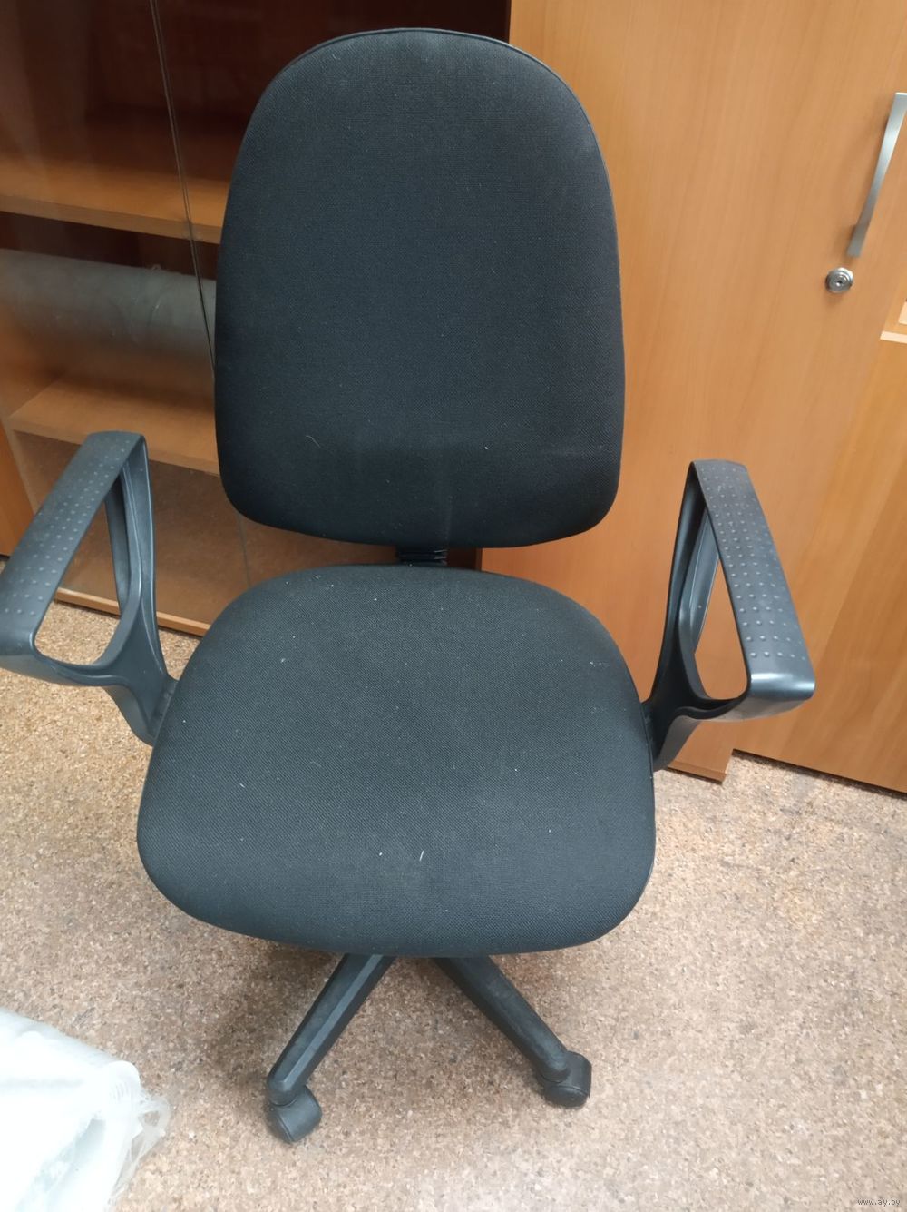 3. Кресло тканевое без рисунка: не работает механизм подьема-опускания, нет одного колеса.
