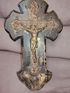 Крест дерево, распятие латуневое покрашен золотистой краской