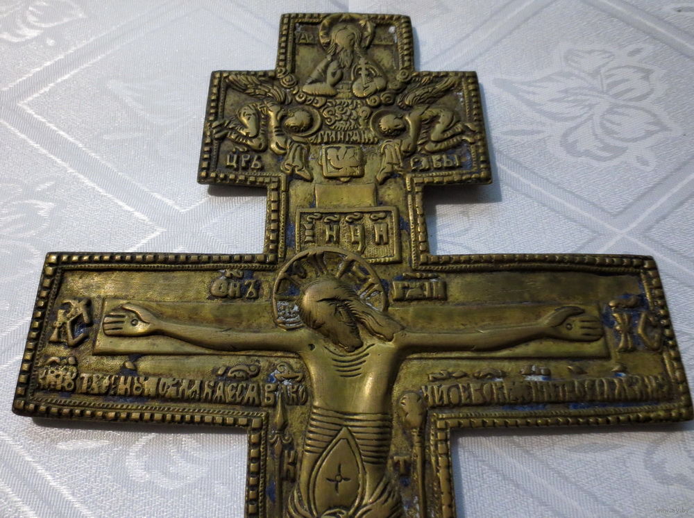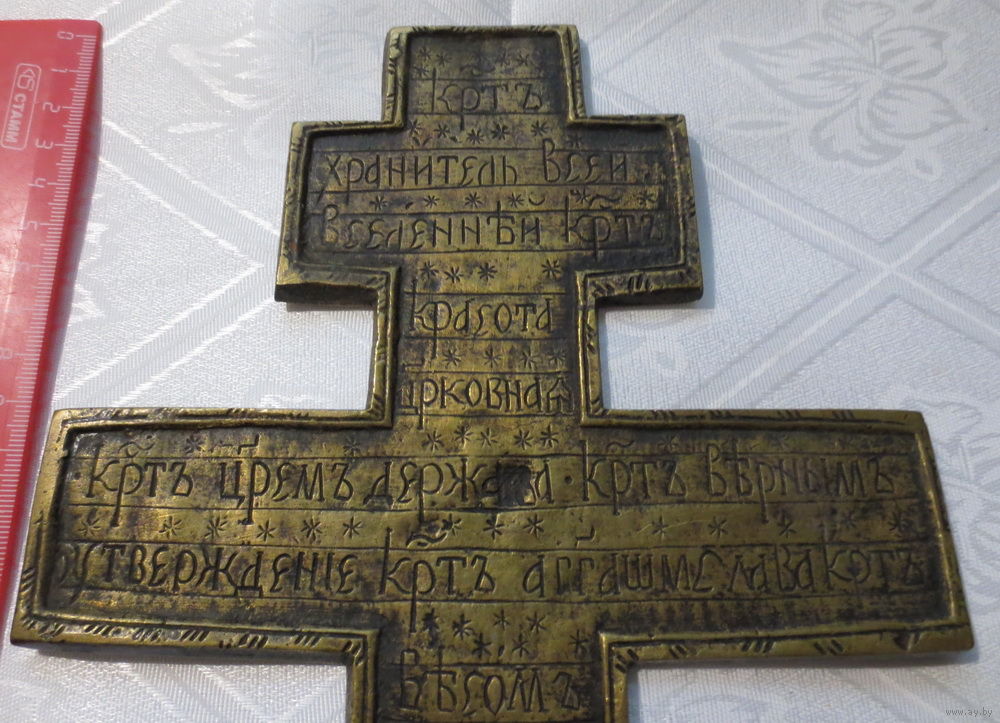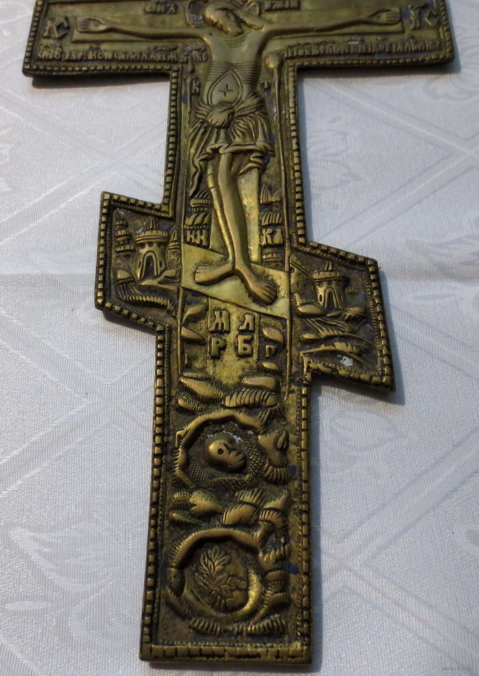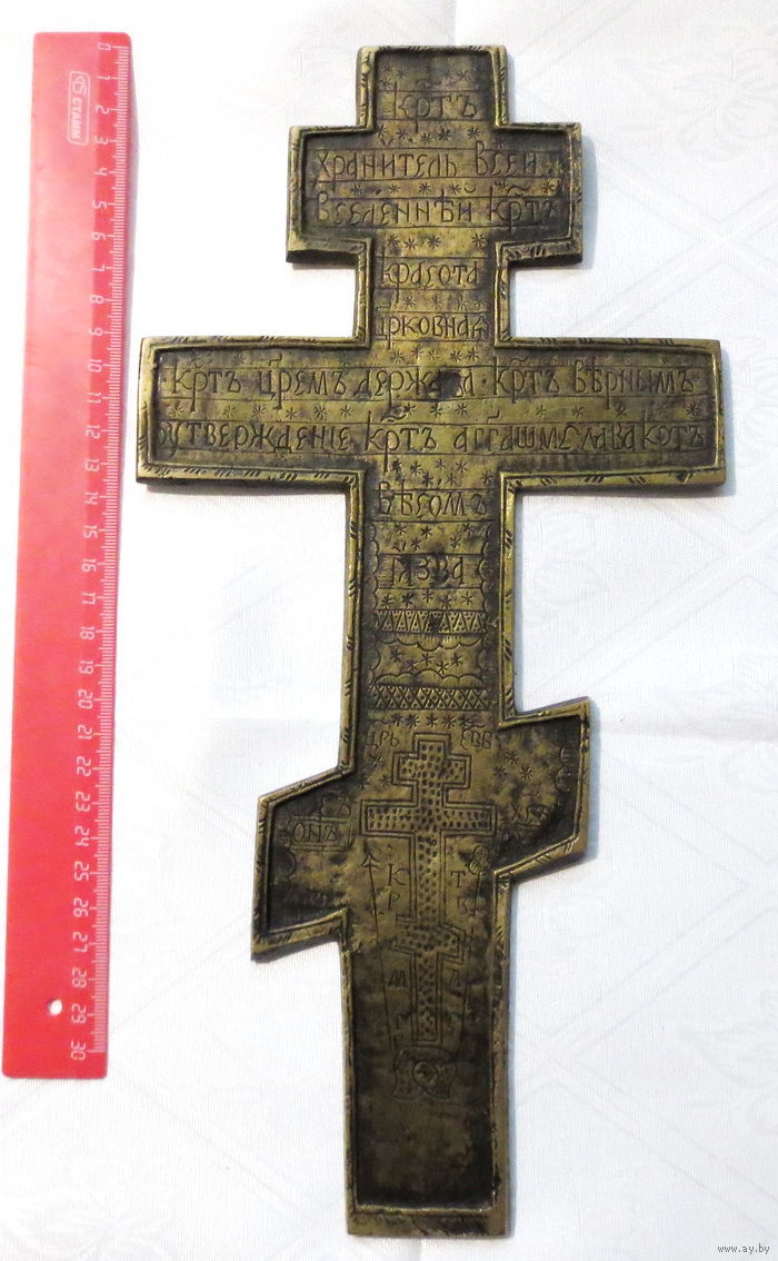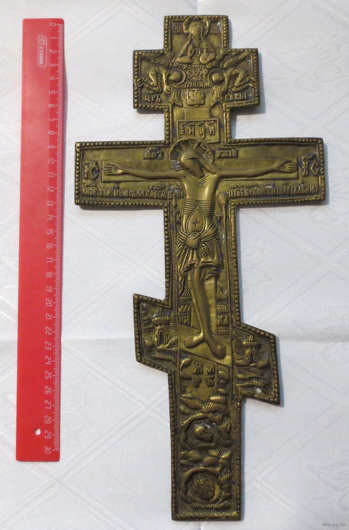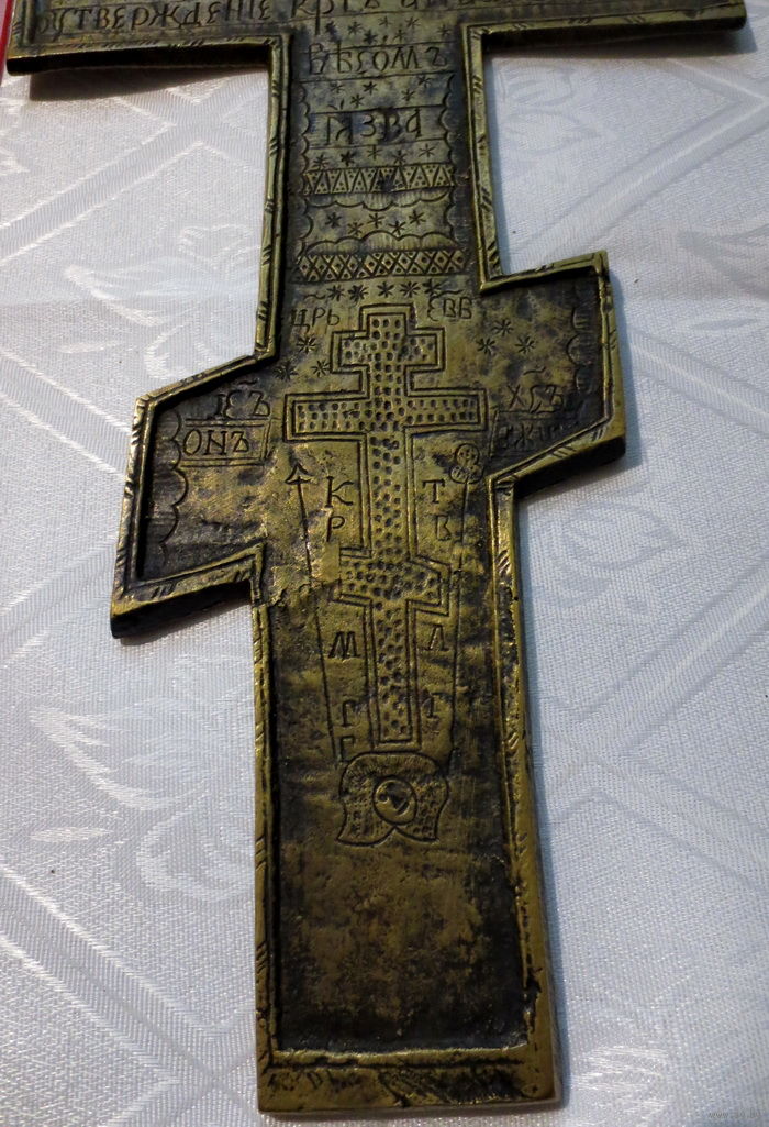 Крест киотный, 19 век. Бронза. Максимально большой размер для киотных крестов: 35 см. х 17.5 см. Красивый, большой, оригинальный крест. Отличное состояние.