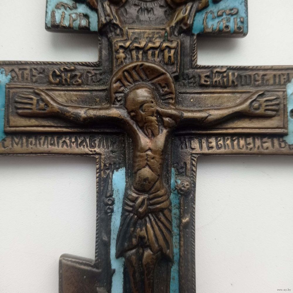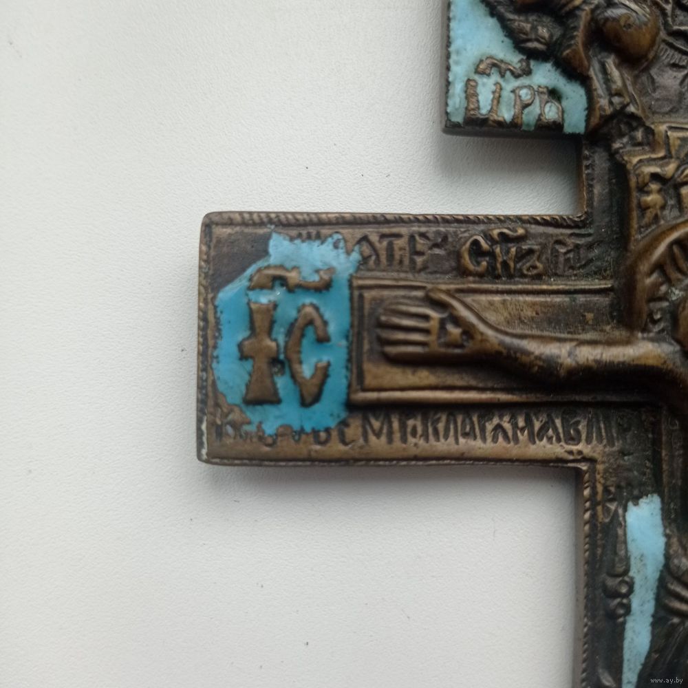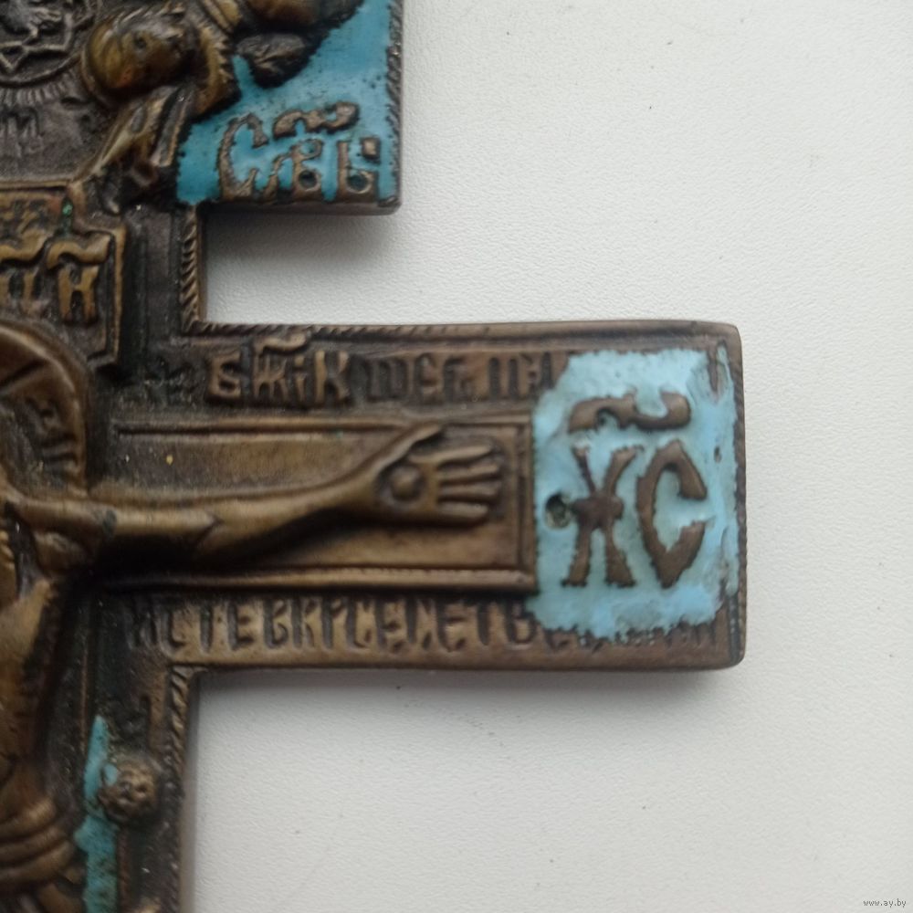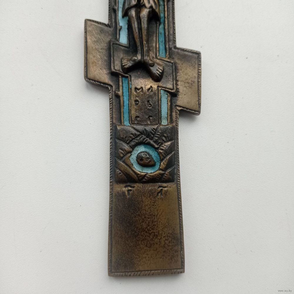 На лицевой стороне «Распятие Христово», на оборотной стороне отлит текст молитвы на старославянском языке, начинающийся со слов «Крест — хранитель всей Вселенной...».