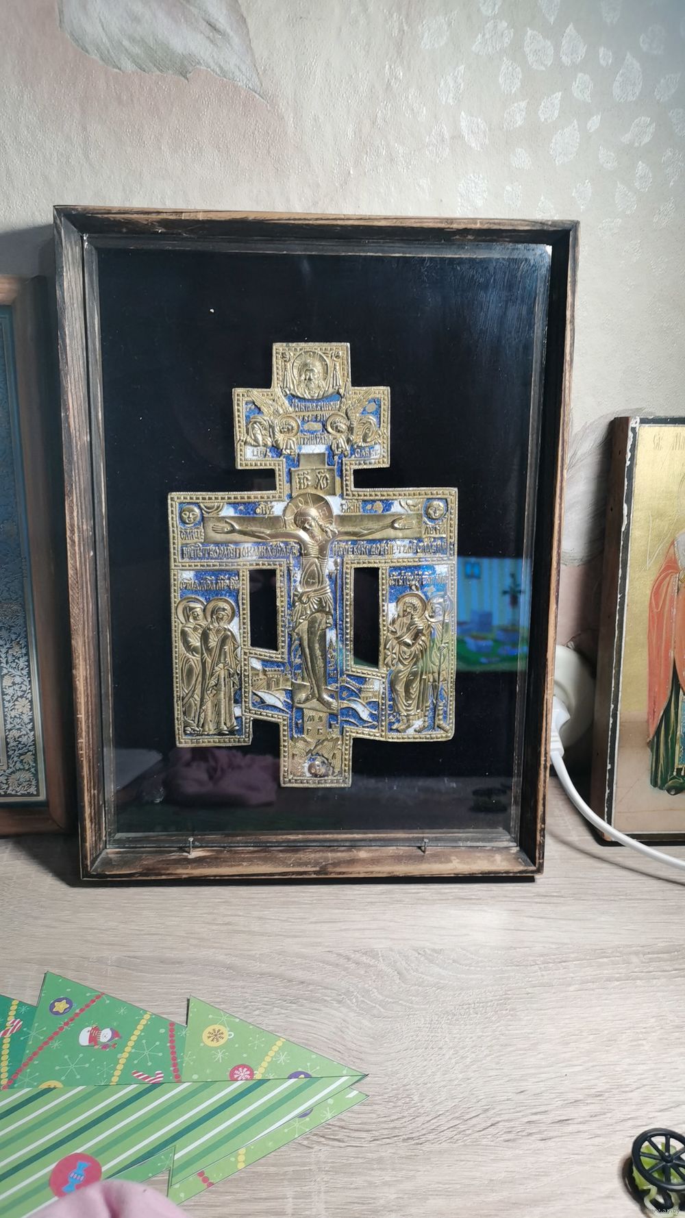 Продам крест киотный с эмалями в родном киоте. Размер 22х14 см.