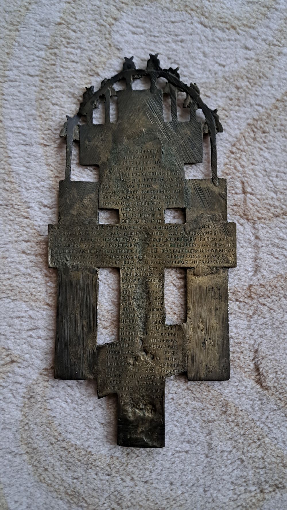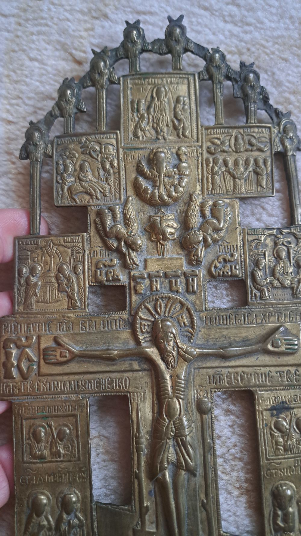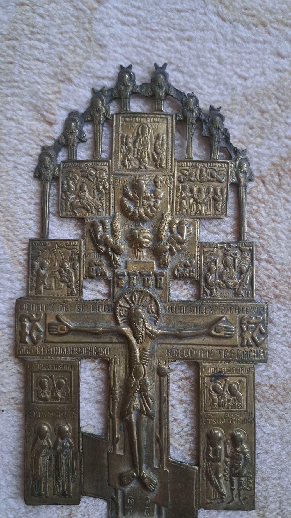 18 век. Крест с херувимами и избранными иконами. Не частый. Отличная сохранность для такого типа крестов. Размер 27.9 × 13.5 см. Достойное пополнение коллекции. Смотрите также и на другие мои лоты. Всегда много интересного в продаже. КУПЛЮ ИКОНЫ. КУПЛЮ УГОЛЬНЫЕ САМОВАРЫ. КУПЛЮ СТАТУЭТКИ И ДРУГОЙ АНТИКВАРИАТ. КУПЛЮ ЧАСЫ КОРПУСА С МАРКИРОВКОЙ АУ. КУПЛЮ МОНЕТЫ, ЗНАКИ, НАГРАДЫ.