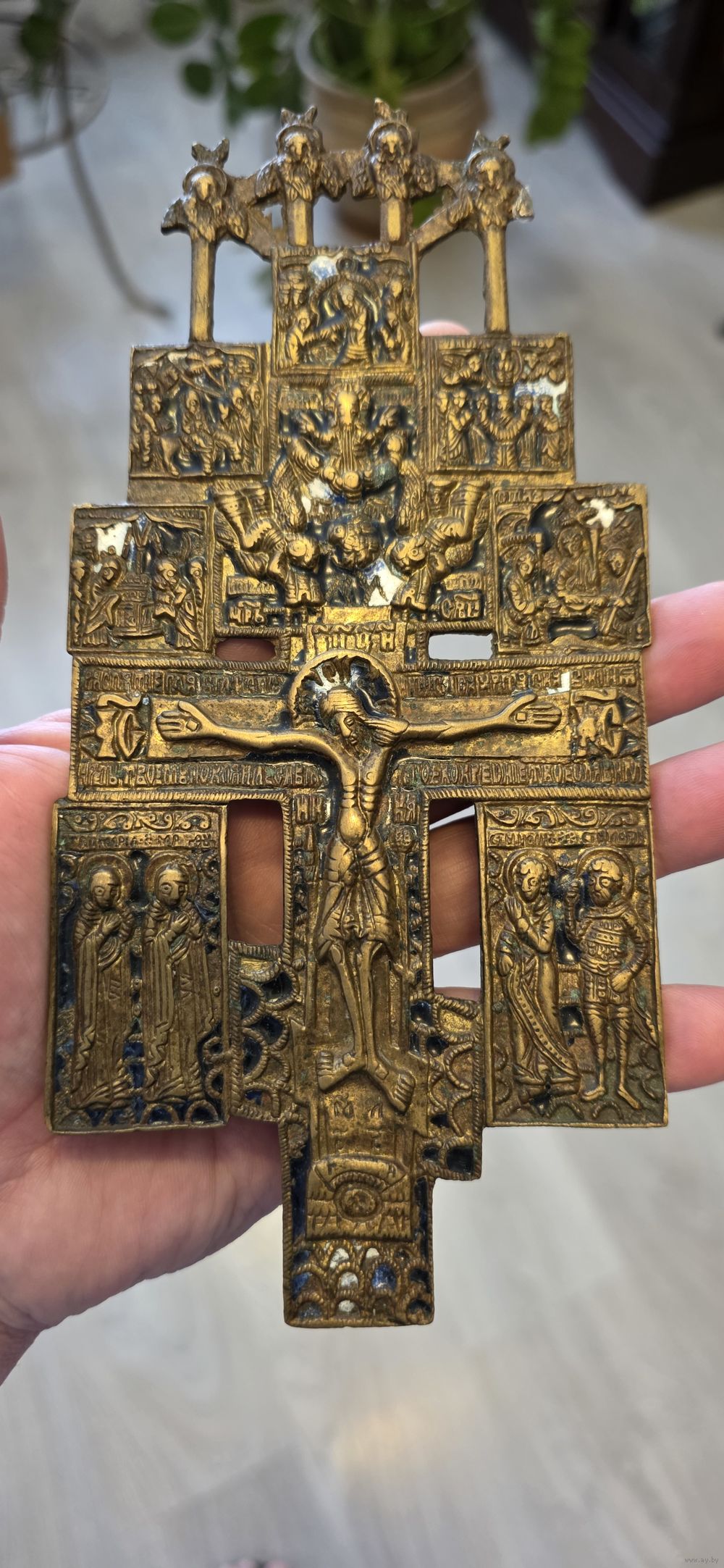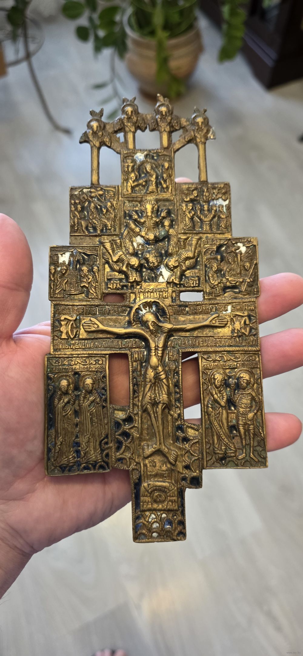 Крест "Распятие Христово с предстоящими и избранными иконами", навершие с херувимами, бронза, литье, эмали, Российская Империя, 1850-1890 гг. Распродажа коллекции!!! Смотрите другие мои объявления. Высылаю почтой ЕВРОПОЧТОЙ