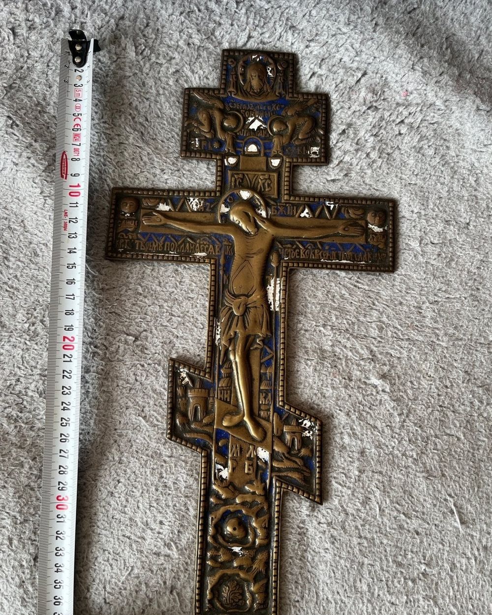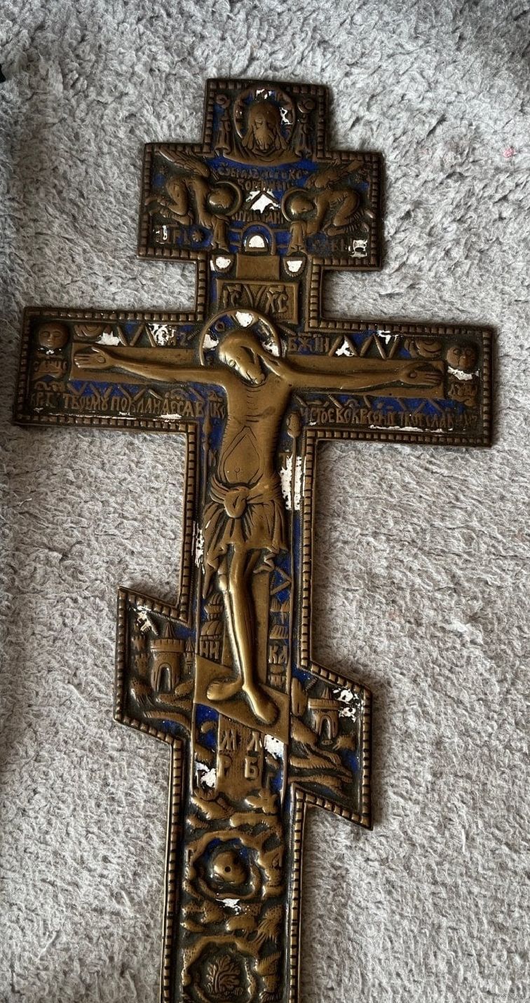Крест Распятие ,медное литье, пластика, размер 37,3 см х 19,3 см , эмаль