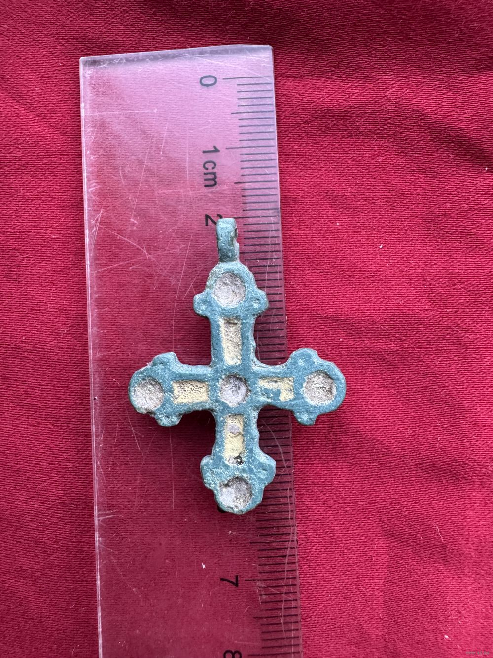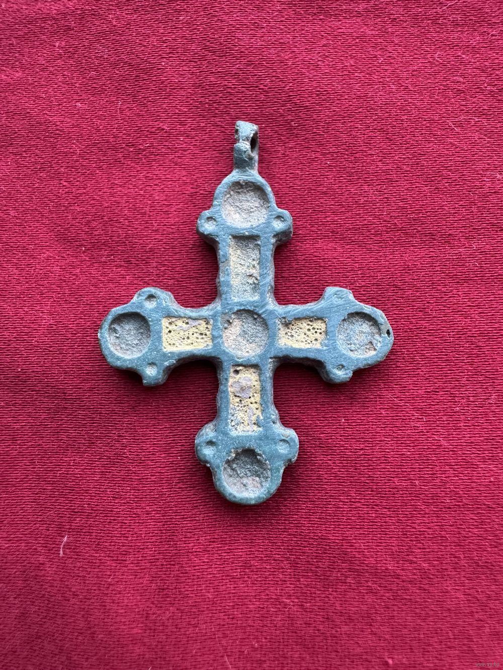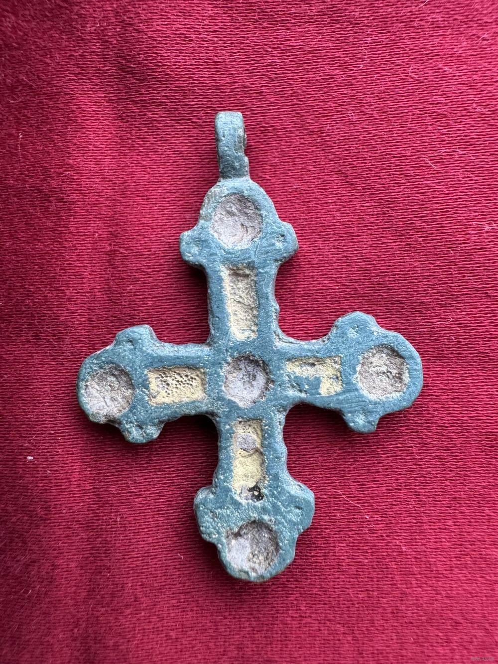Крестик нательный старинный с эмалями