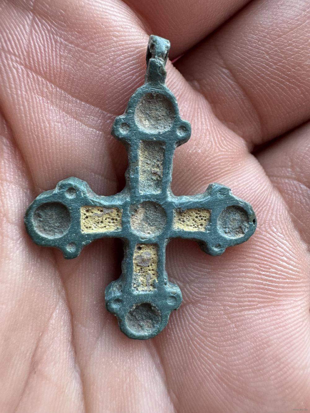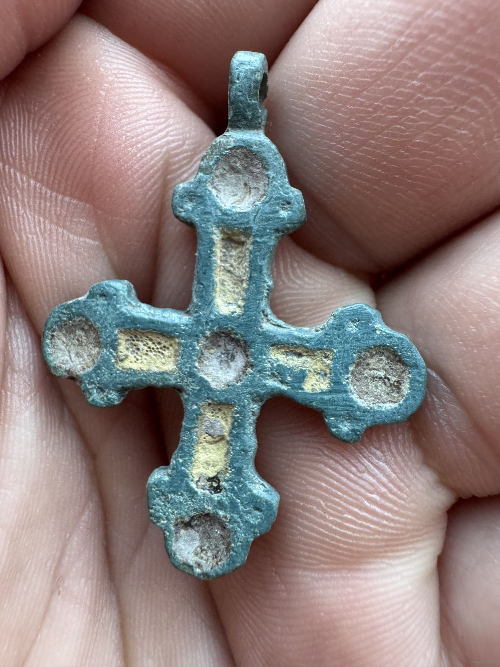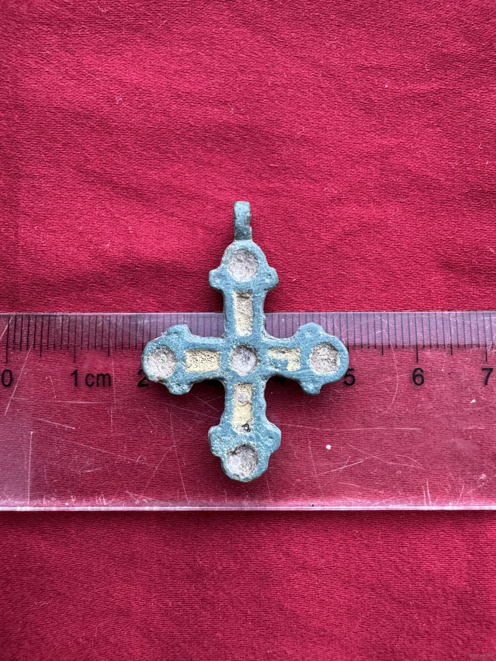 Крестик нательный старинный с эмалями