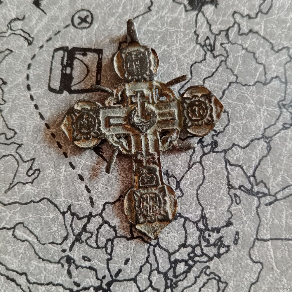 Крестик нательный старинный штурвал 5 см на 3,5 см