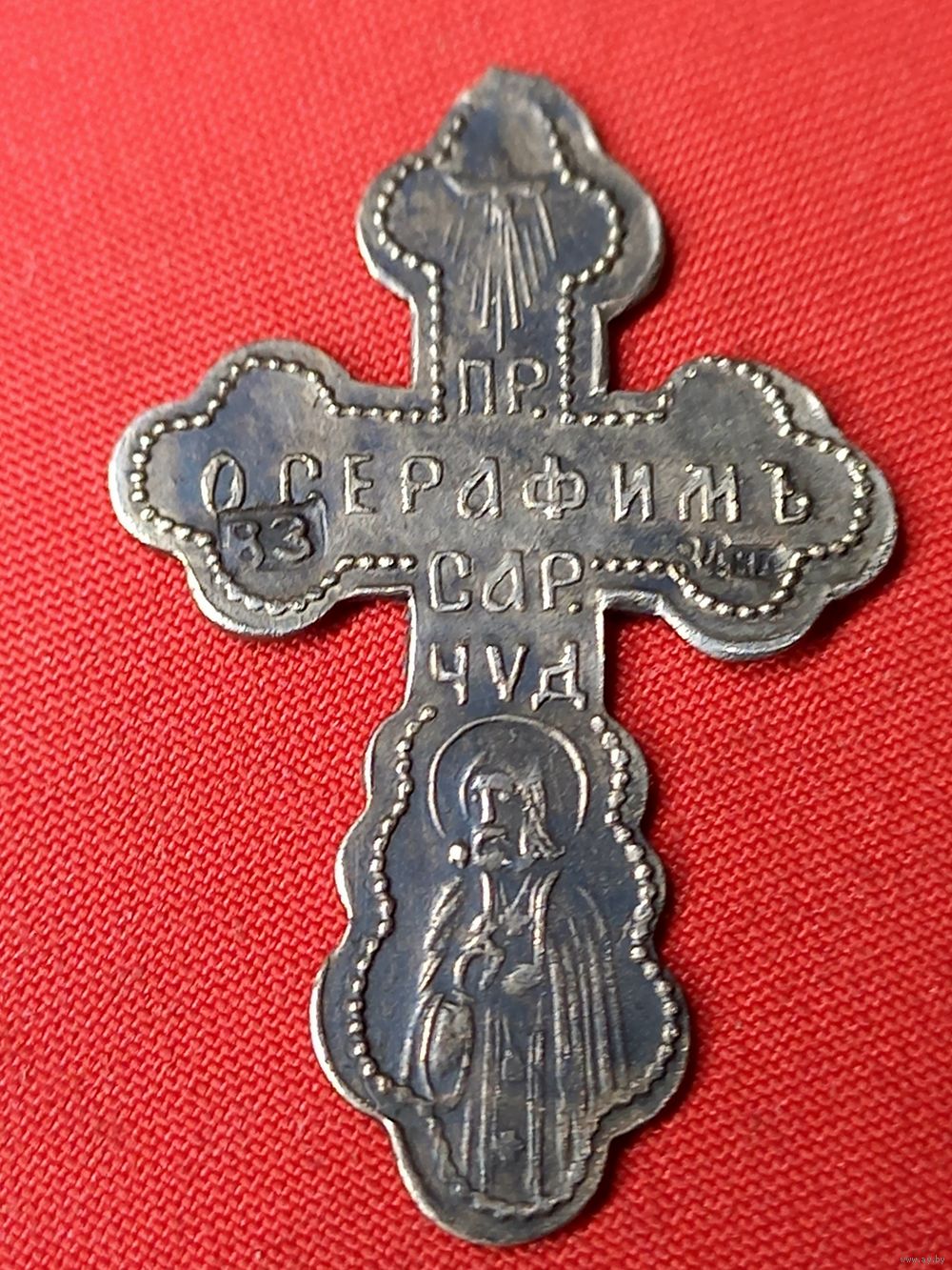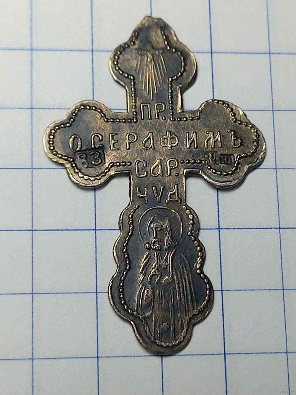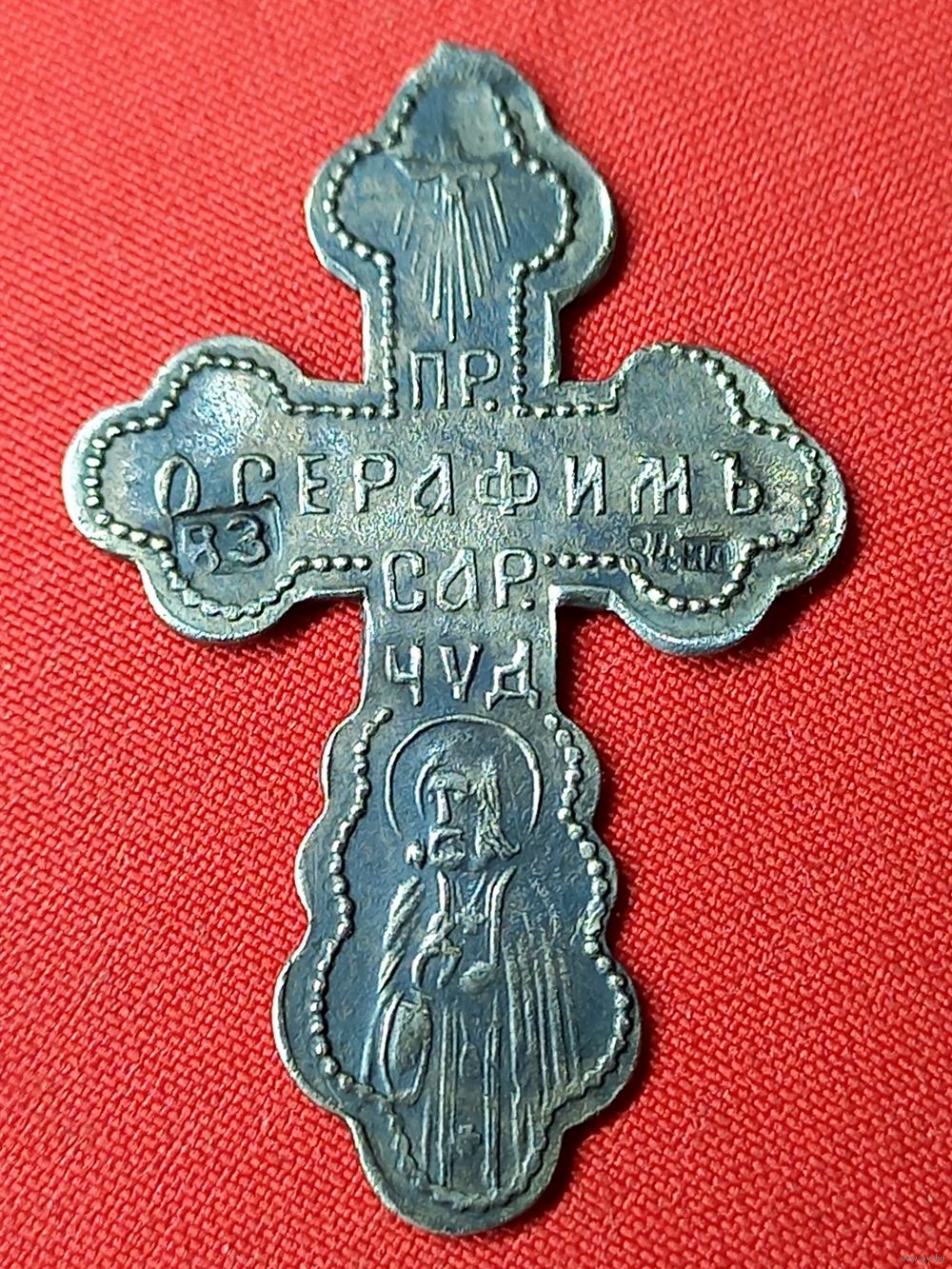 Крестик серебро 84 пр. Пр. Серафимъ Сар. Чуд. С рубля, без м.ц. См. др. мои лоты
