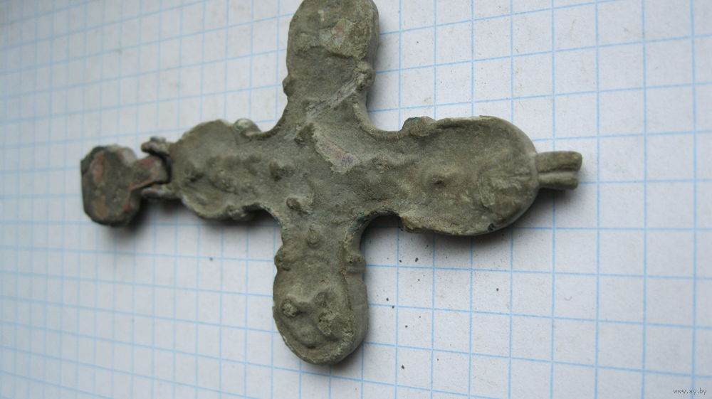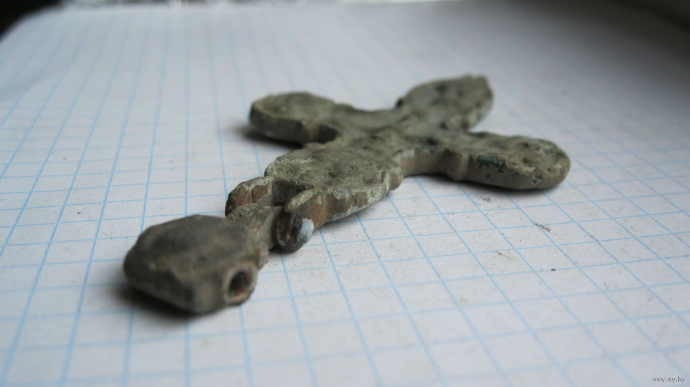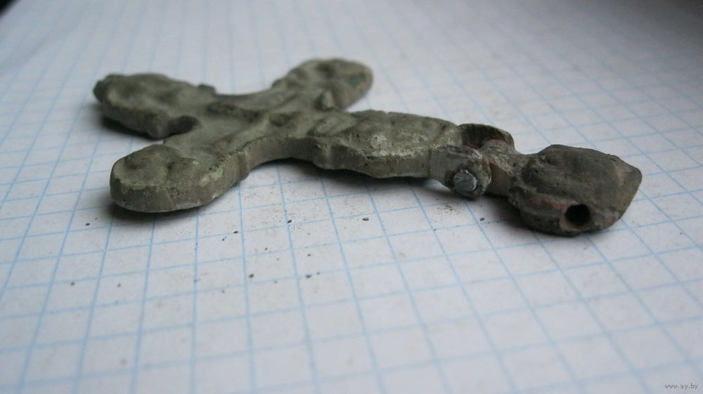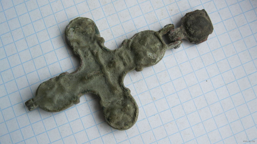 Крестик старинный, нательный. Переливок с энколпиона. Бронза.
