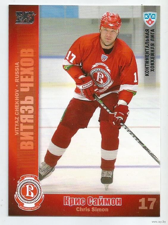 Крис Саймон / "Витязь" Чехов / вариации: серебро / Коллекция "SeReal Карточки КХЛ 2010-2011".