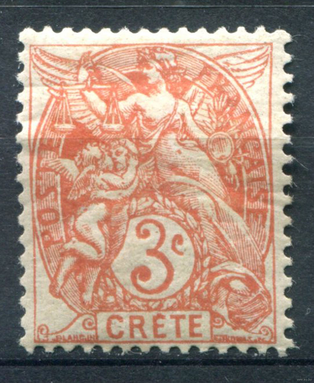 Крит, Французская почта - 1902/03г. - аллегория, 3 с - 1 марка - MH, потрескавшийся клей [Mi 3]. #3-WB-91-A-1