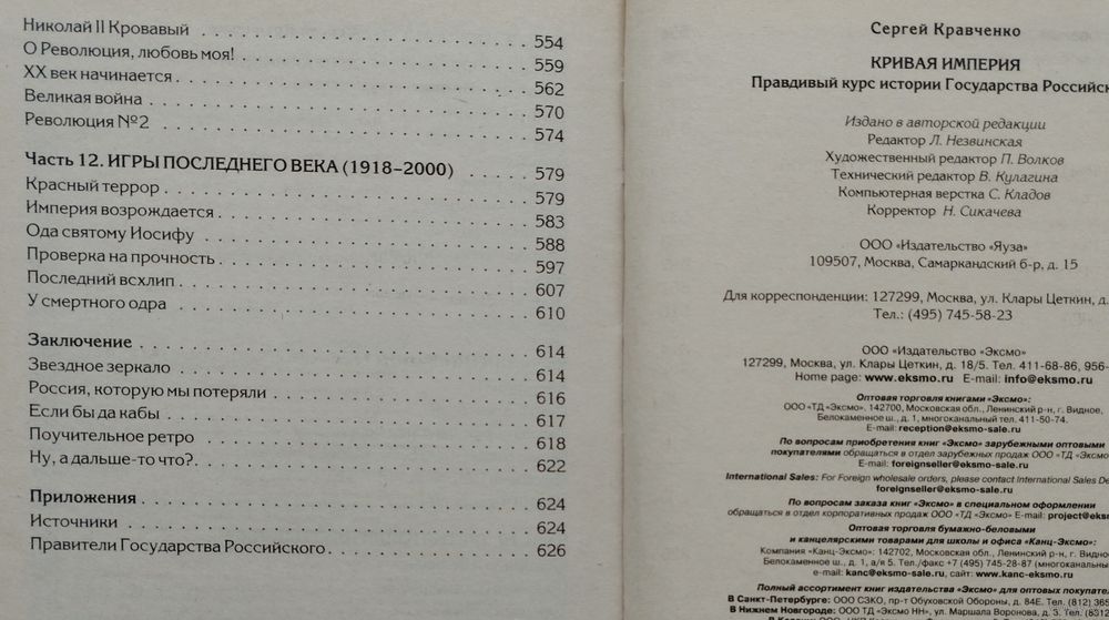 Тираж 5000 экз. 648 стр. Уникальное расследование Сергея Кравченко анализирует удивительные, а порой и комические картины жизни государства Российского с 862 года до наших дней. Наемся же духу объяснить историю нашей страны житейскими, понятными причинами. Вглядимся в лица и дела героев былых времен. Посмотрим на события нашего прошлого с позиций простого человека Сколько на самом деле жен и наложниц было у князя Владимира? Правда ли, что Иван Грозный венчался с Марией Ивановной, не разводясь с Анной Колтовской? Умер ли Александр I в Таганроге или стал сибирским отшельником и долгие годы прожил в покаянии? Кто на самом деле расправился с Иваном Сусаниным и почему?
