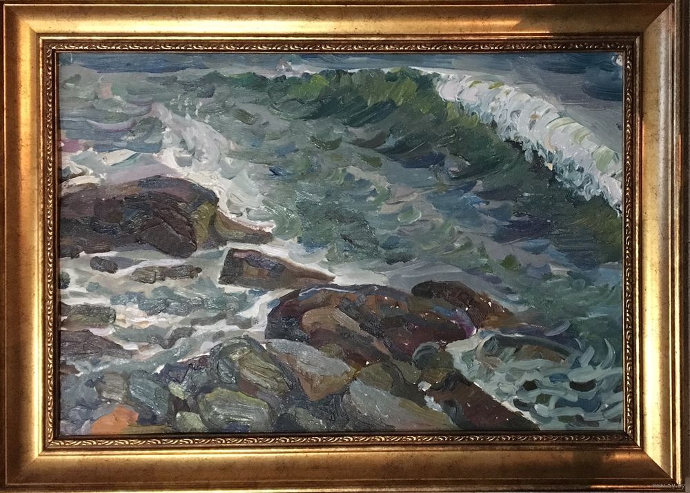 Крохалев П.С (Крохолев) Море и камни,1971 г. К/М. 34х50 см; с рамой - 43х59 см.