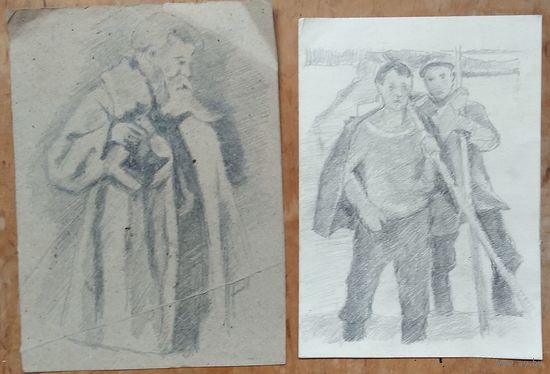 Крохалев Петр. Два рисунка. Карандаш. Бумага. 15х21 см. Цена за 1.
