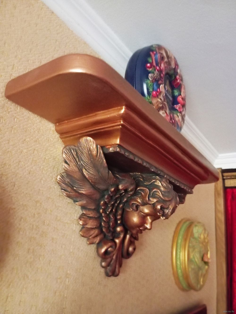 Кронштейн-полка Ангел , Ширина 45 см , Глубина 12 см , Высота 21 см , гипс , перламутр , акрил . Всё Белпочтой или самовывоз