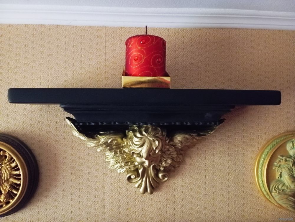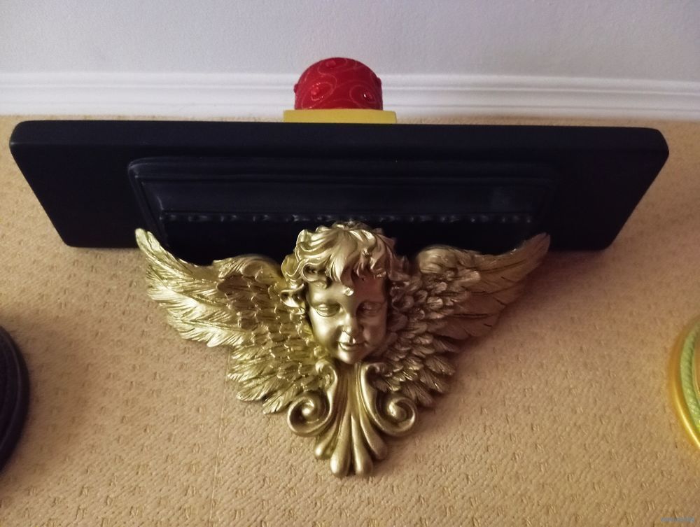 Кронштейн-Полка АНГЕЛ-ХРАНИТЕЛЬ Шир 45 см , Гл 12 см Выс 20.5 см , гипс , эмаль зеркальное золото , эмаль матовая чёрная . Всё Белпочтой или самовывоз