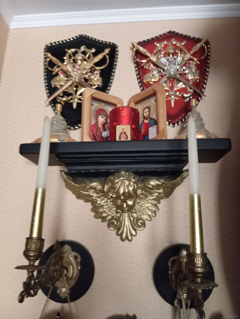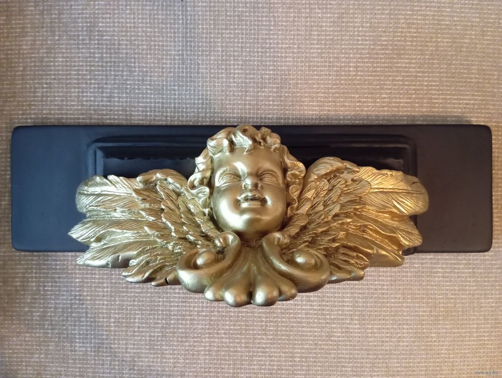 Кронштейн-Полка АНГЕЛ-ХРАНИТЕЛЬ Шир 45 см , Гл 12 см Выс 20.5 см , гипс , эмаль зеркальное золото , эмаль матовая чёрная . Всё Белпочтой или самовывоз