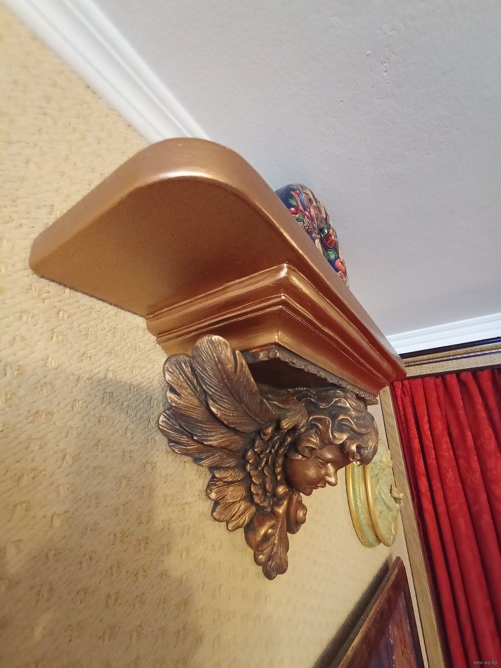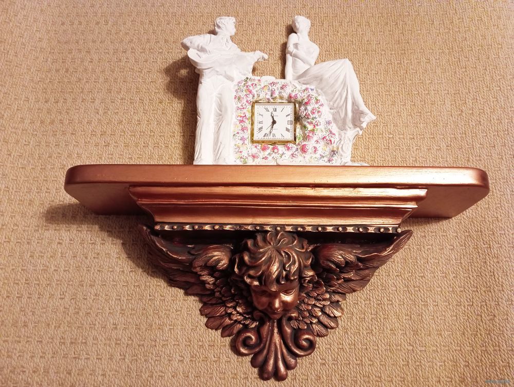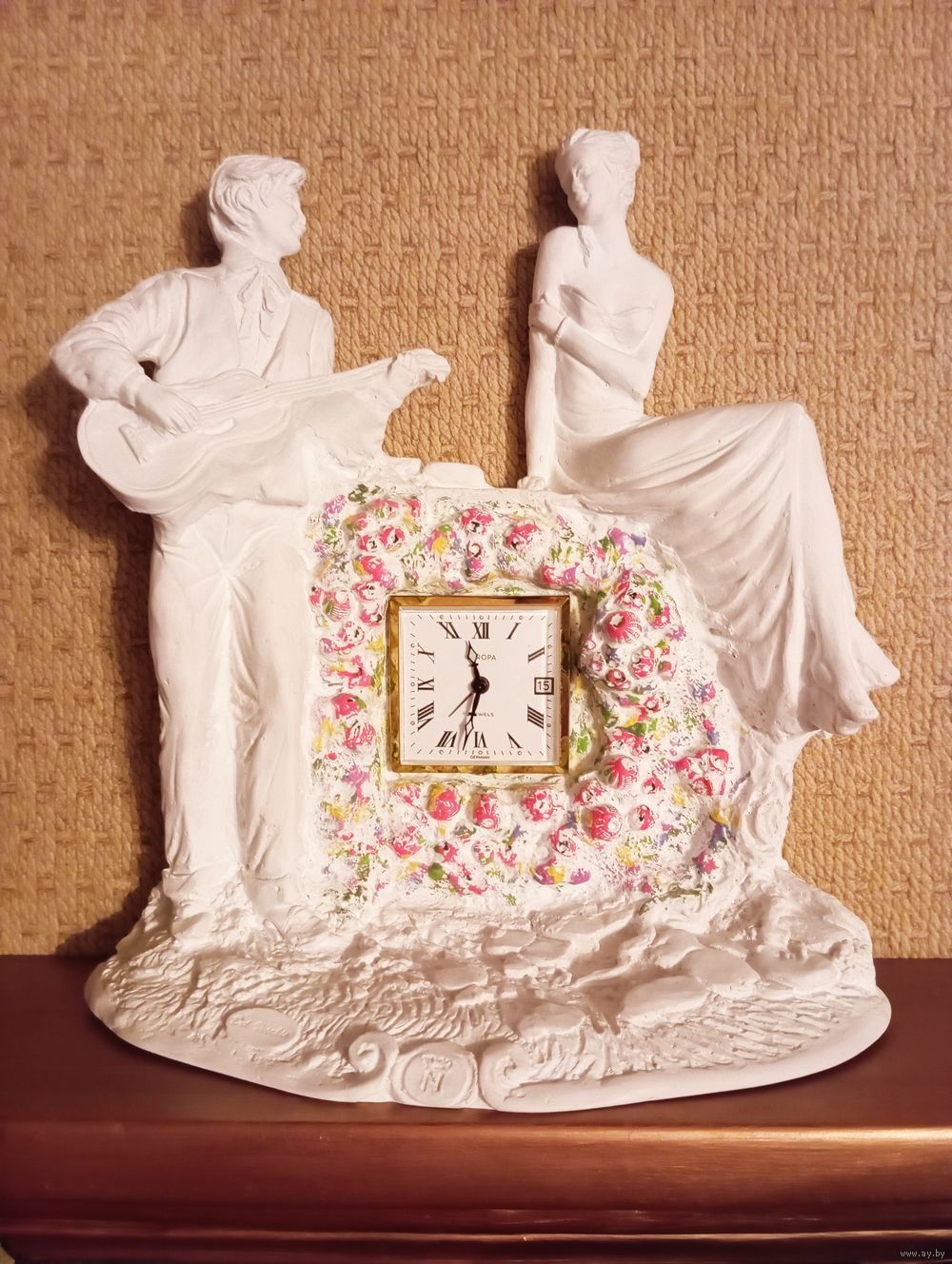 Кронштейн-Ангел , Ширина 45 см , Глубина 12 см , Высота 21 см , гипс , перламутр , акрил . Горельеф Влюблённая Пара Выс 29 см (гипс) у часов-будильника EUROPA Германия в ремонт , всё на фото , завожу идут , стрелки передвинуть колёсики отсутствуют для поворота их и стрелка сдвинута минутная , не разбирал , не в курсе остального , кнопка остановки звонка которая сверху должна быть имеется на коробке из под часов на фото . Всё Белпочтой или самовывоз