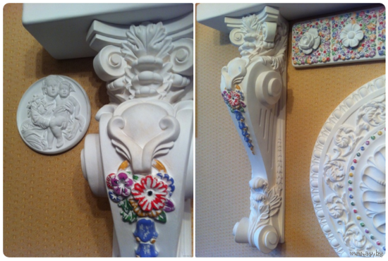КРОНШТЕЙНЫ КАМИННАЯ ПАРА - 2 шт. (гипс , акрил) - Длина 71 см , Ширина 20 см , Глубина 19 см . Всё Белпочтой или самовывоз .