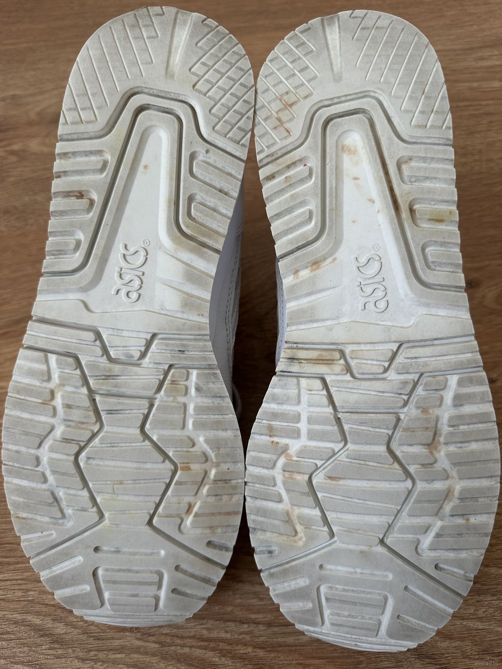 Оригинальные качественные фирменные кроссы из Америки японской фирмы Асикс с белыми глянцевыми элементами. Очень хорошее состояние, есть потертости и малозаметное пожелтение швов и подошвы. В коробке.
