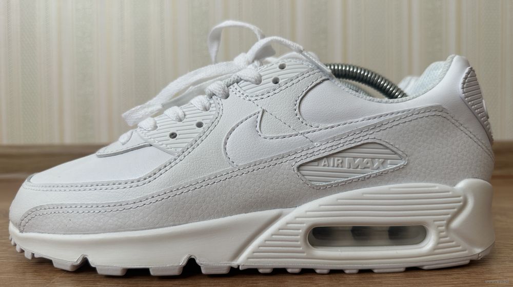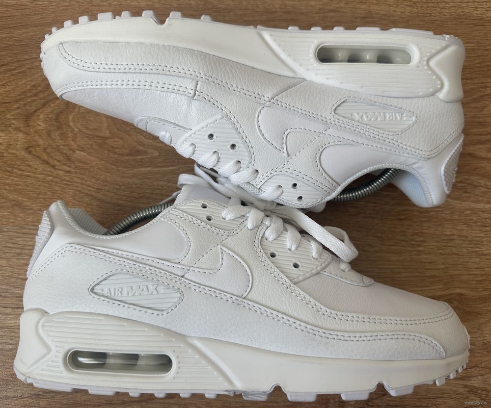 Оригинальные качественные классические фирменные кроссы из Америки Найк Аир 90 белая кожа без вставок из текстиля.