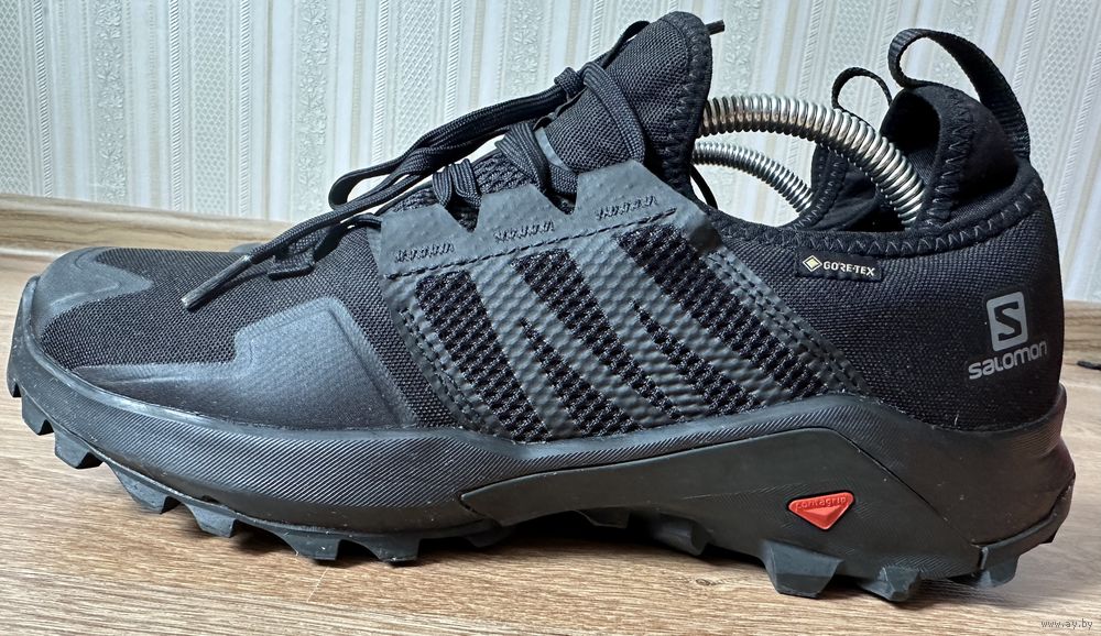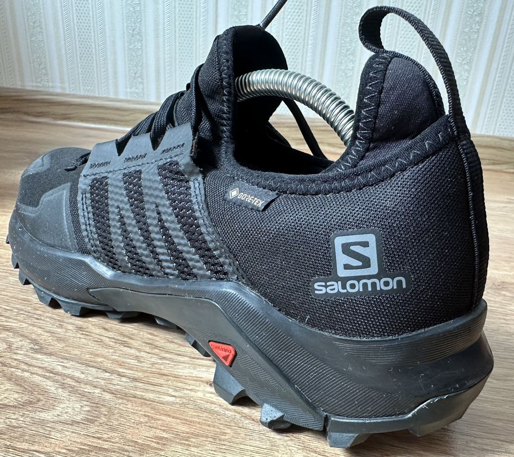 Оригинальные качественные фирменные водонепроницаемые крепкие мужские кроссы из Америки Саломон для бега по грязи, гравейке и, для хайкинга, идеально подходящие для походов и прогулок по бездорожью. GORE-TEX материал поддерживает температуру стопы, чтобы она не потела и была сухой. Цвет черный.