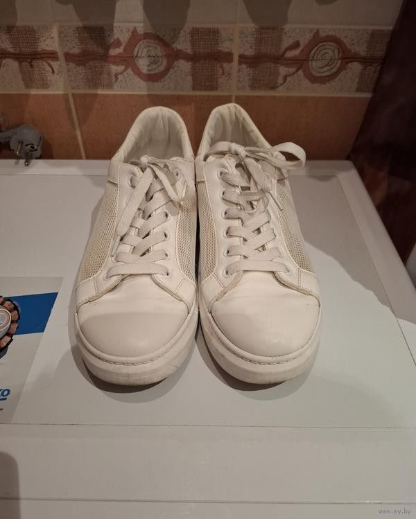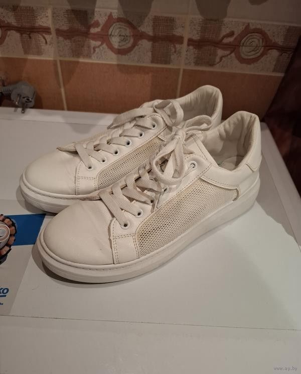 Продаются кроссовки женские 38 размер. Белого цвета. Очень удобные на сеточке.