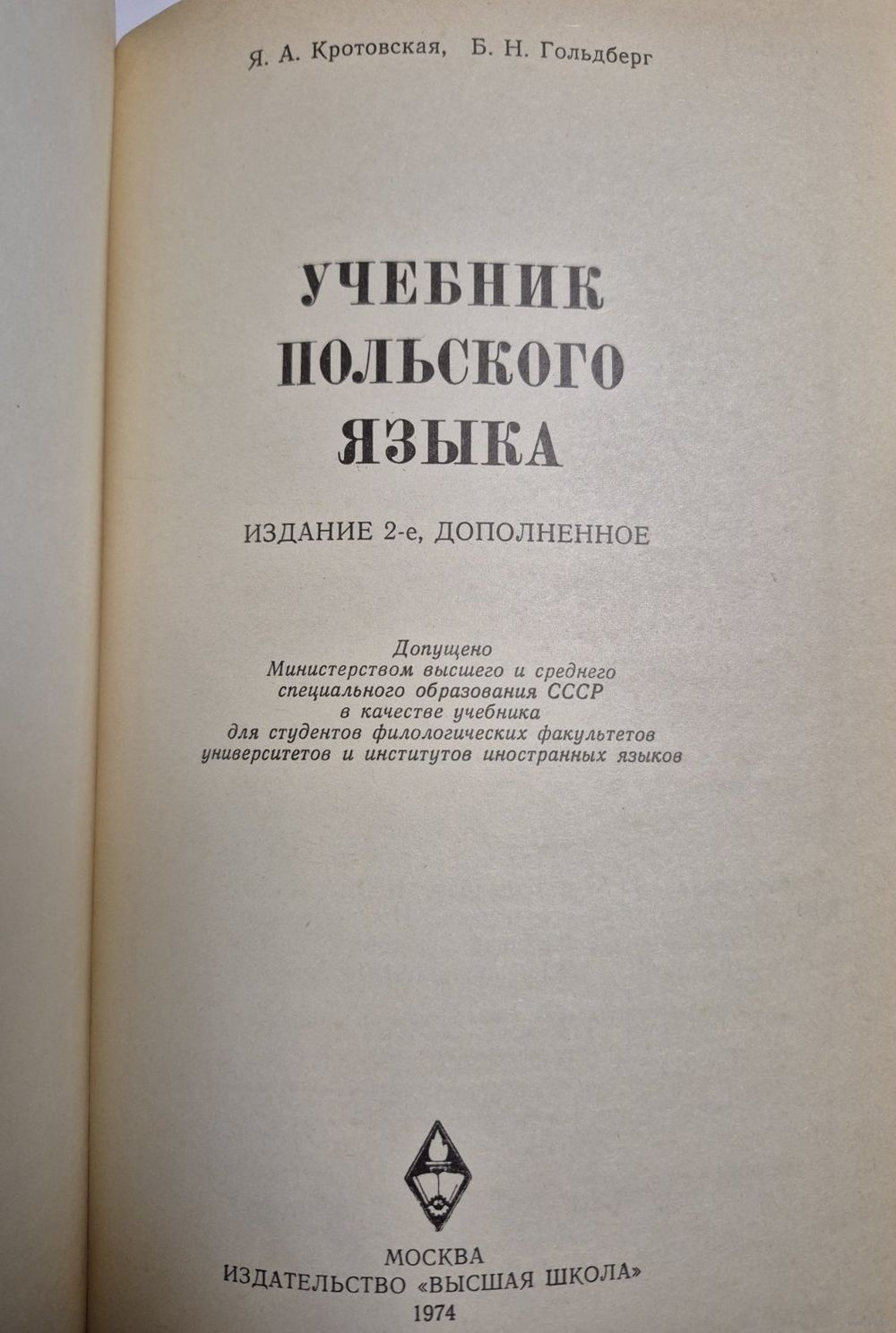 Учебник польского языка. Кротовская Я.А., Гольдберг Б.Н. М. Изд-во Высшая школа. 1974г.