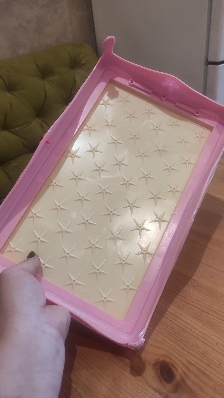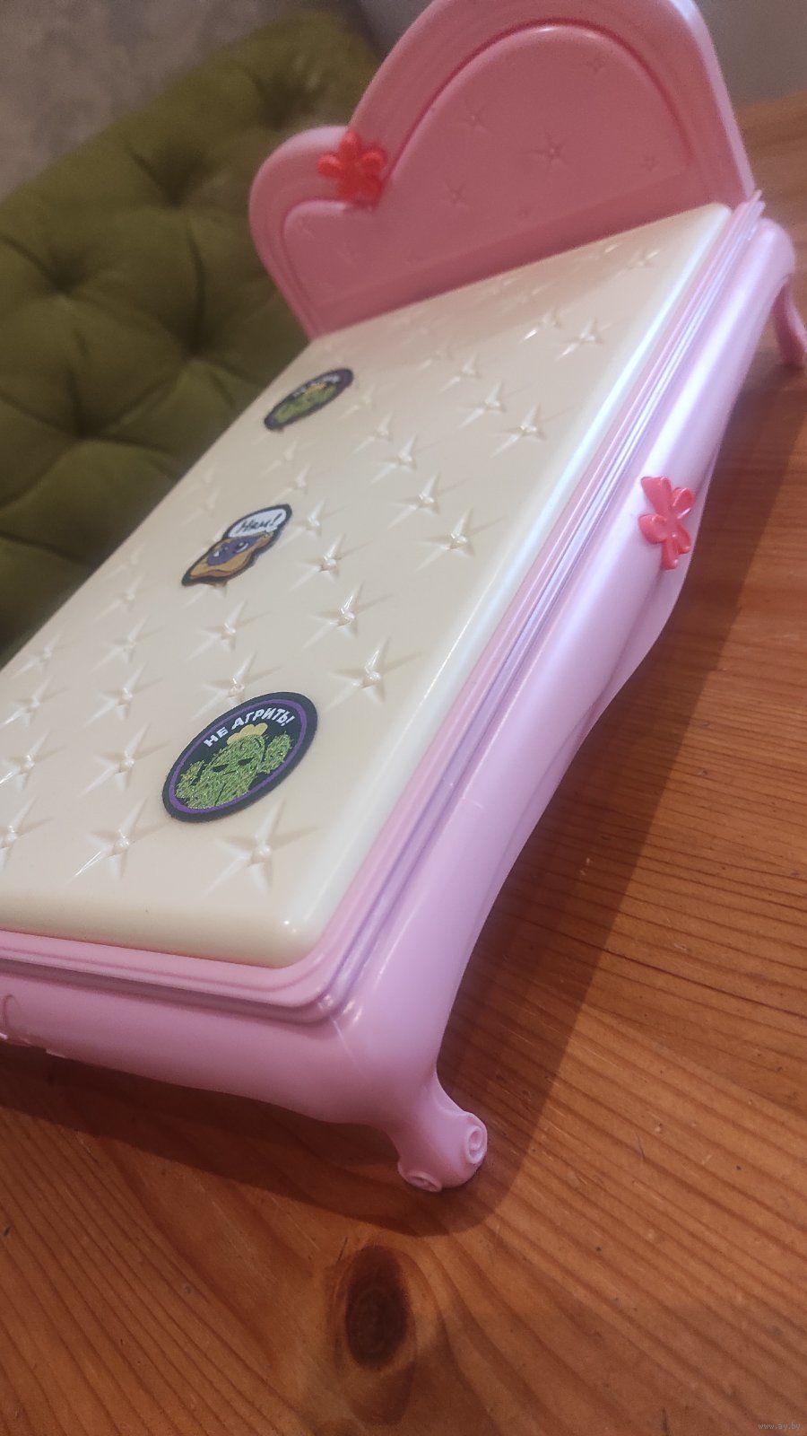 Кроватка для кукол пластик, размер 21 на 33 см, высота изголовья 16 см. Очень классная кроватка. Целая.