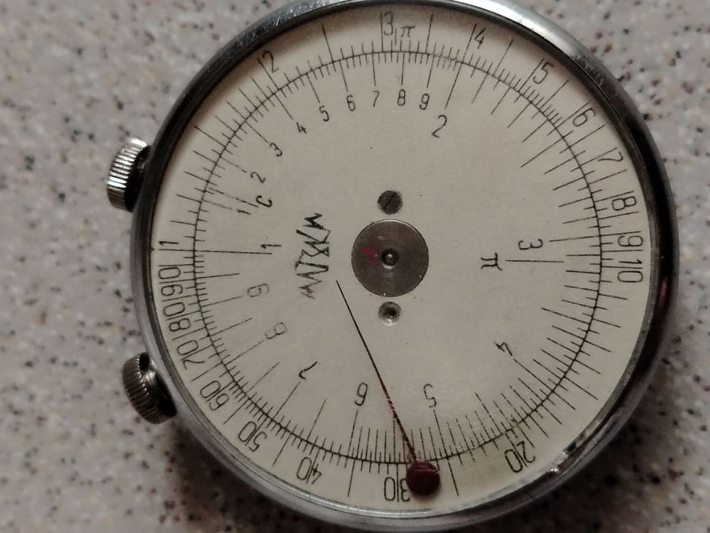 Круговая логарифмическая линейка (напр., КЛ-1) — это компактный аналоговый вычислительный прибор (обычно диаметром ~6 см) с вращающимися дисками и стрелками, предназначенный для быстрых инженерных расчетов. Позволяет выполнять умножение, деление, возведение в квадрат, извлечение корней и тригонометрические функции с точностью до 3-х знаков.