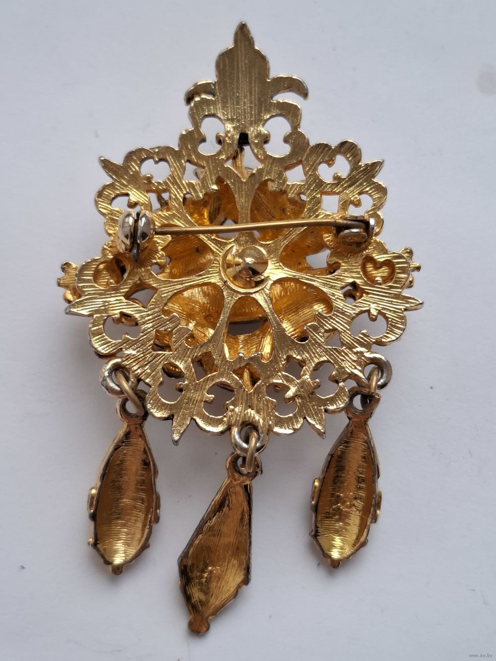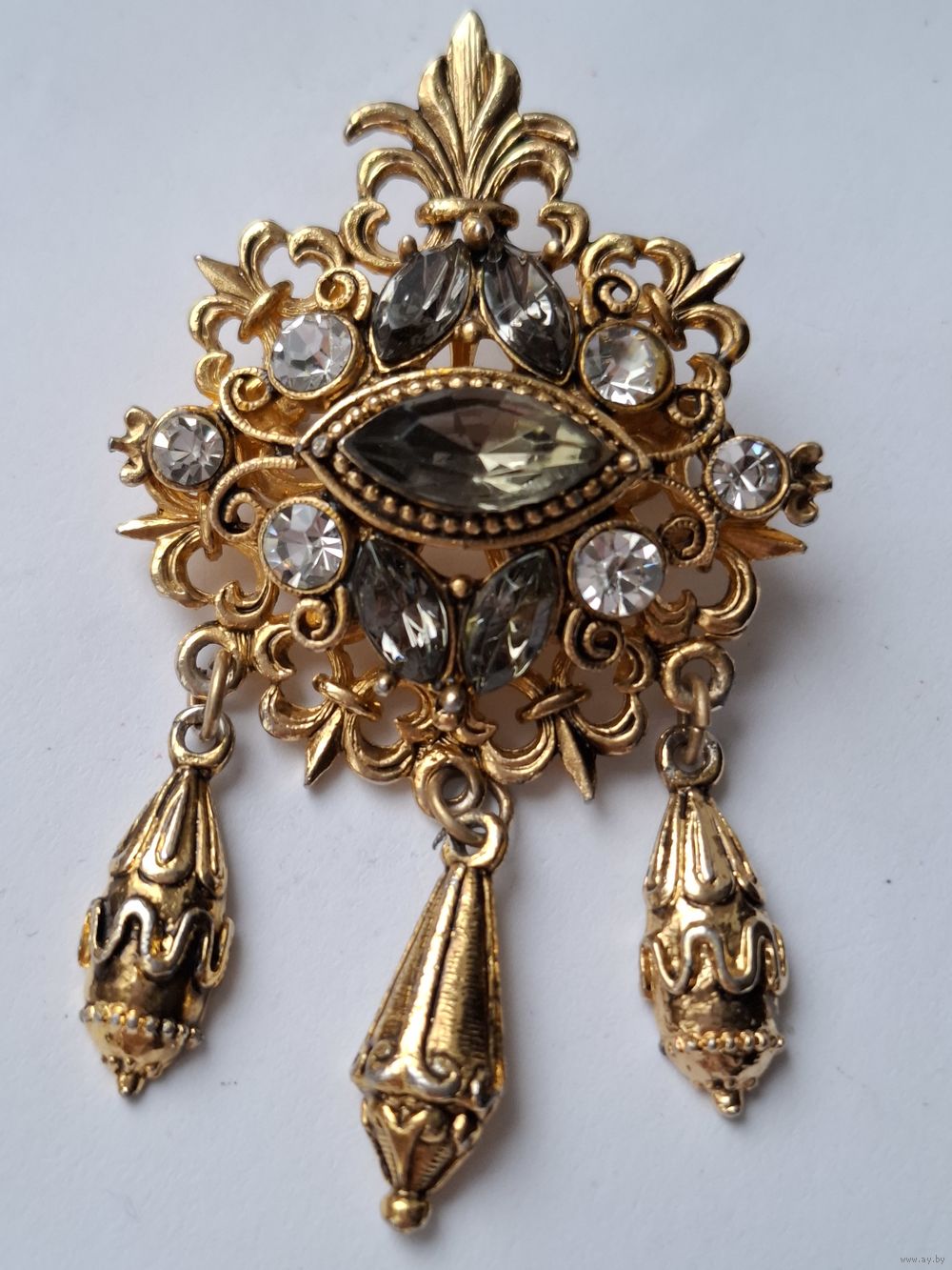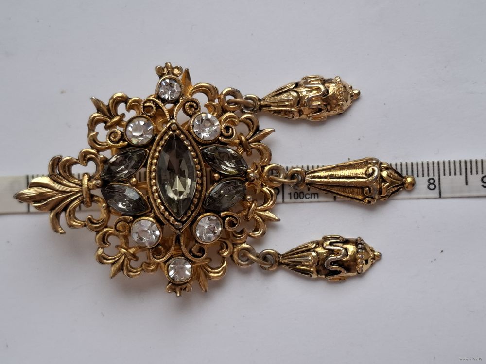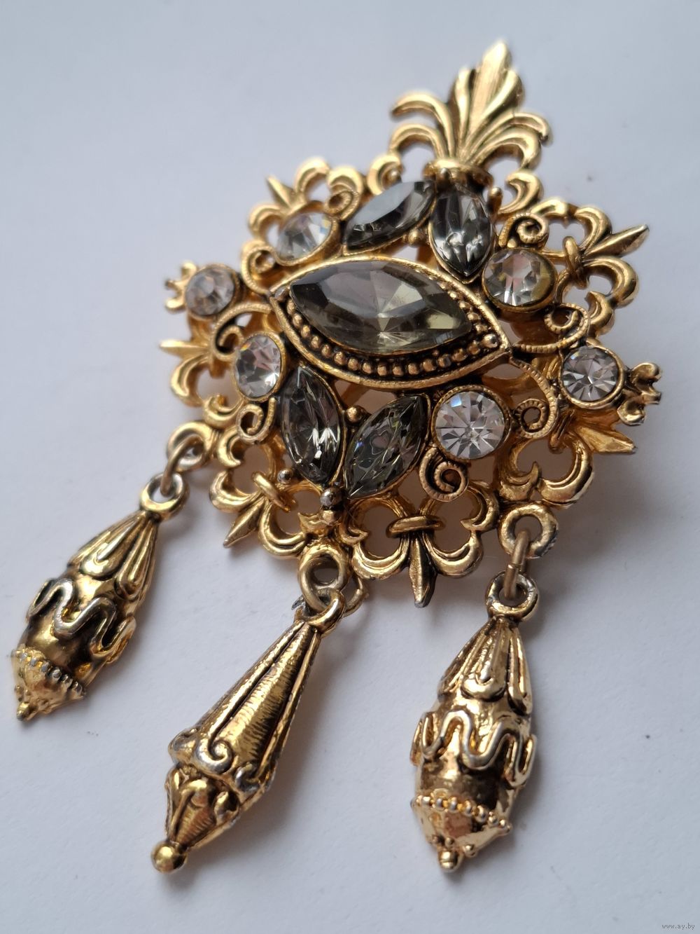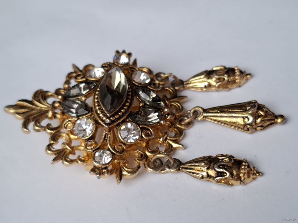 Крупная брошь с подвесками и кристаллами, 70-е годы