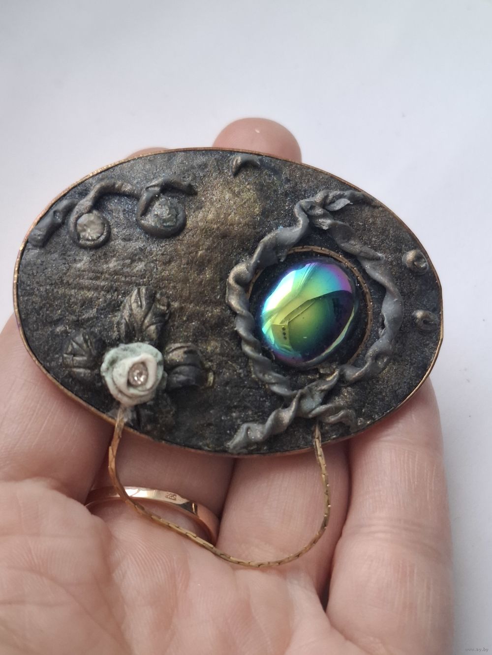 Крупная брошь. Яркая вставка.