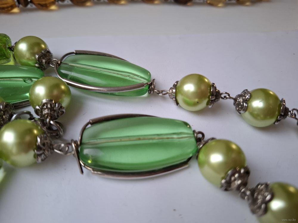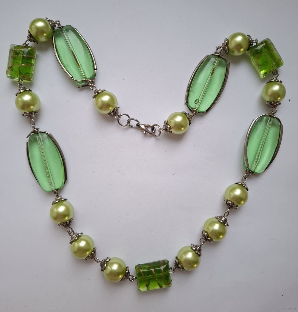 Крупные бусы. Леденцы. Смешанные материалы. Длина 56 см