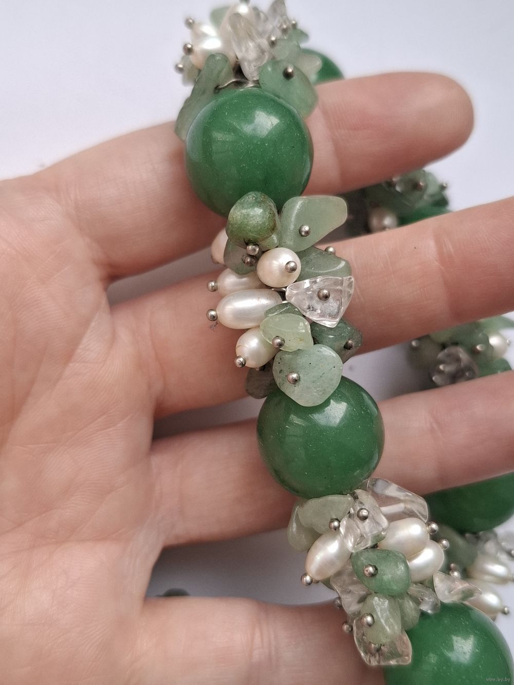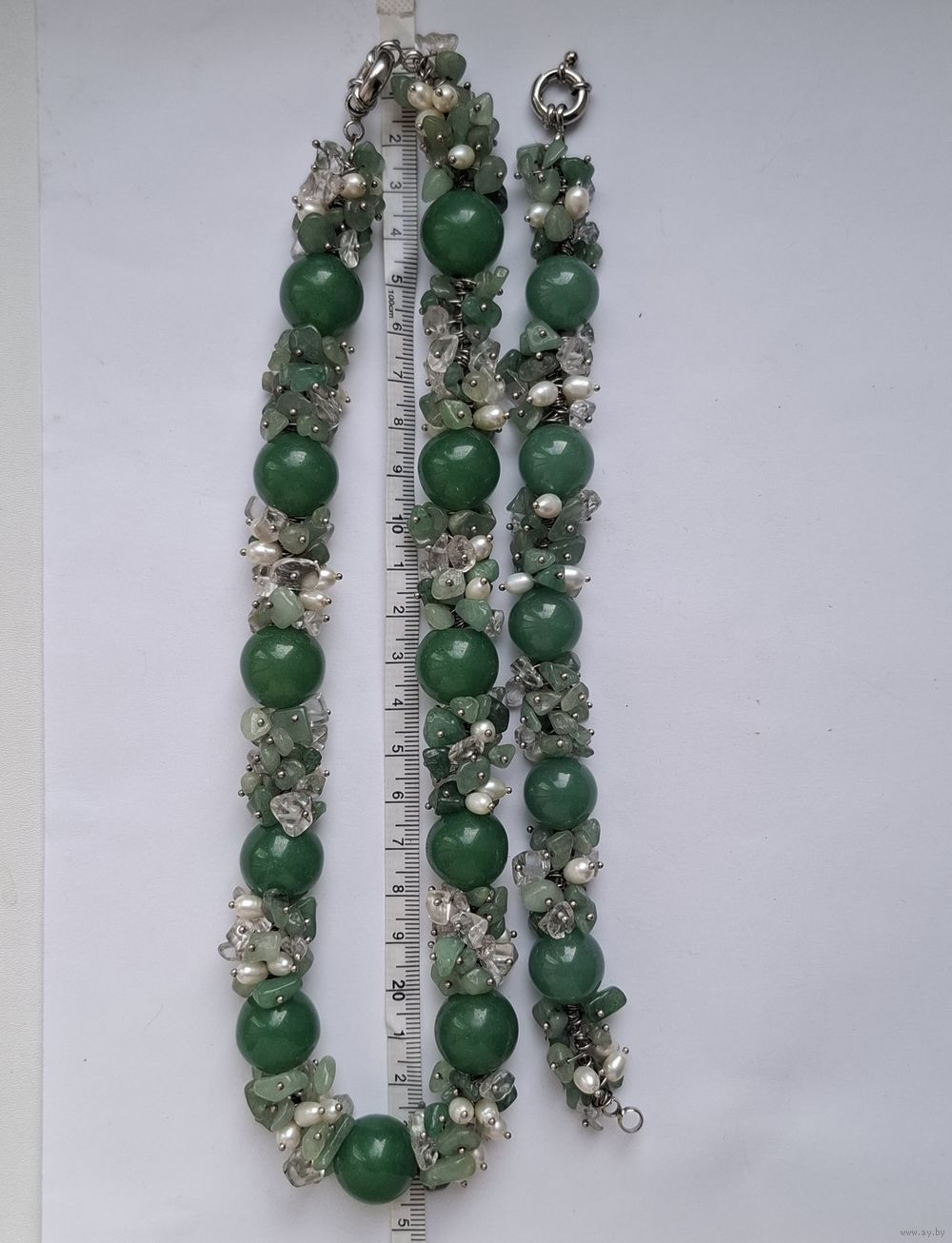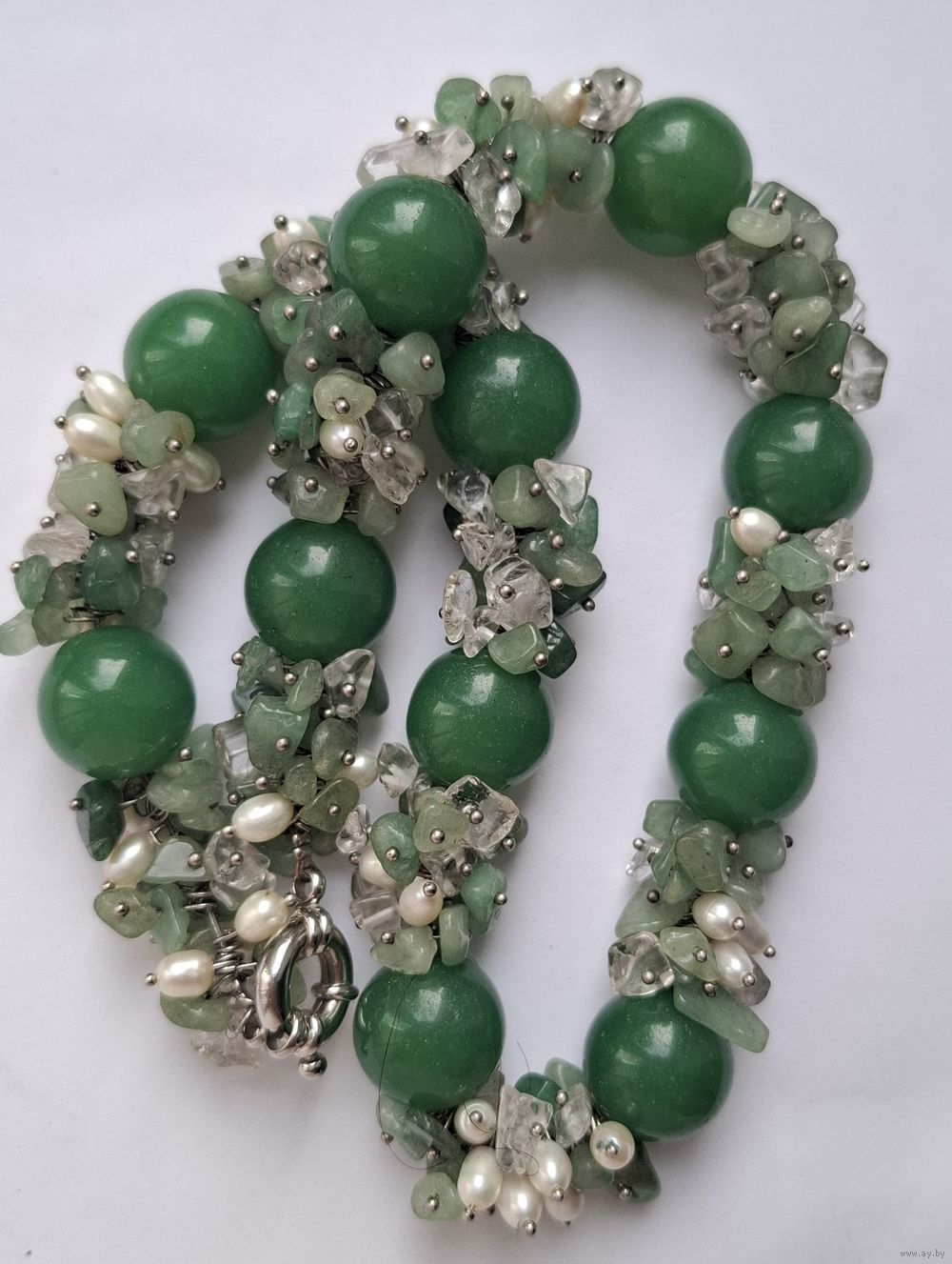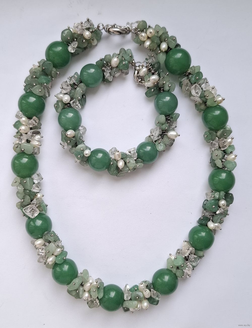 Крупные Колье и браслет. Набор. Нефрит и натуральный жемчуг.