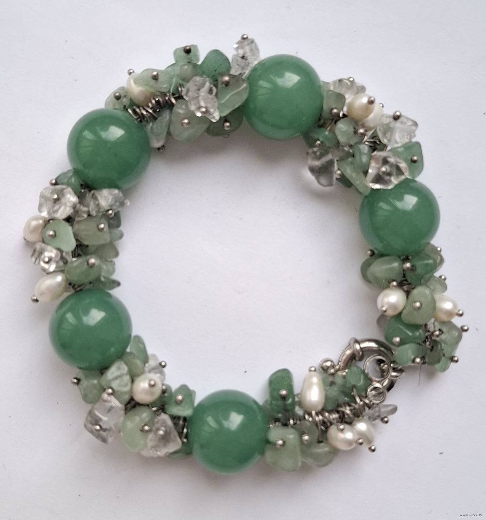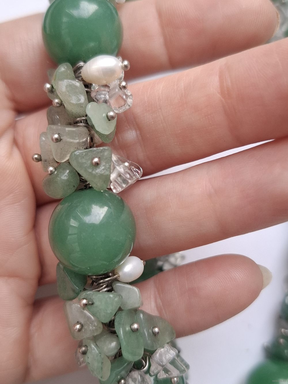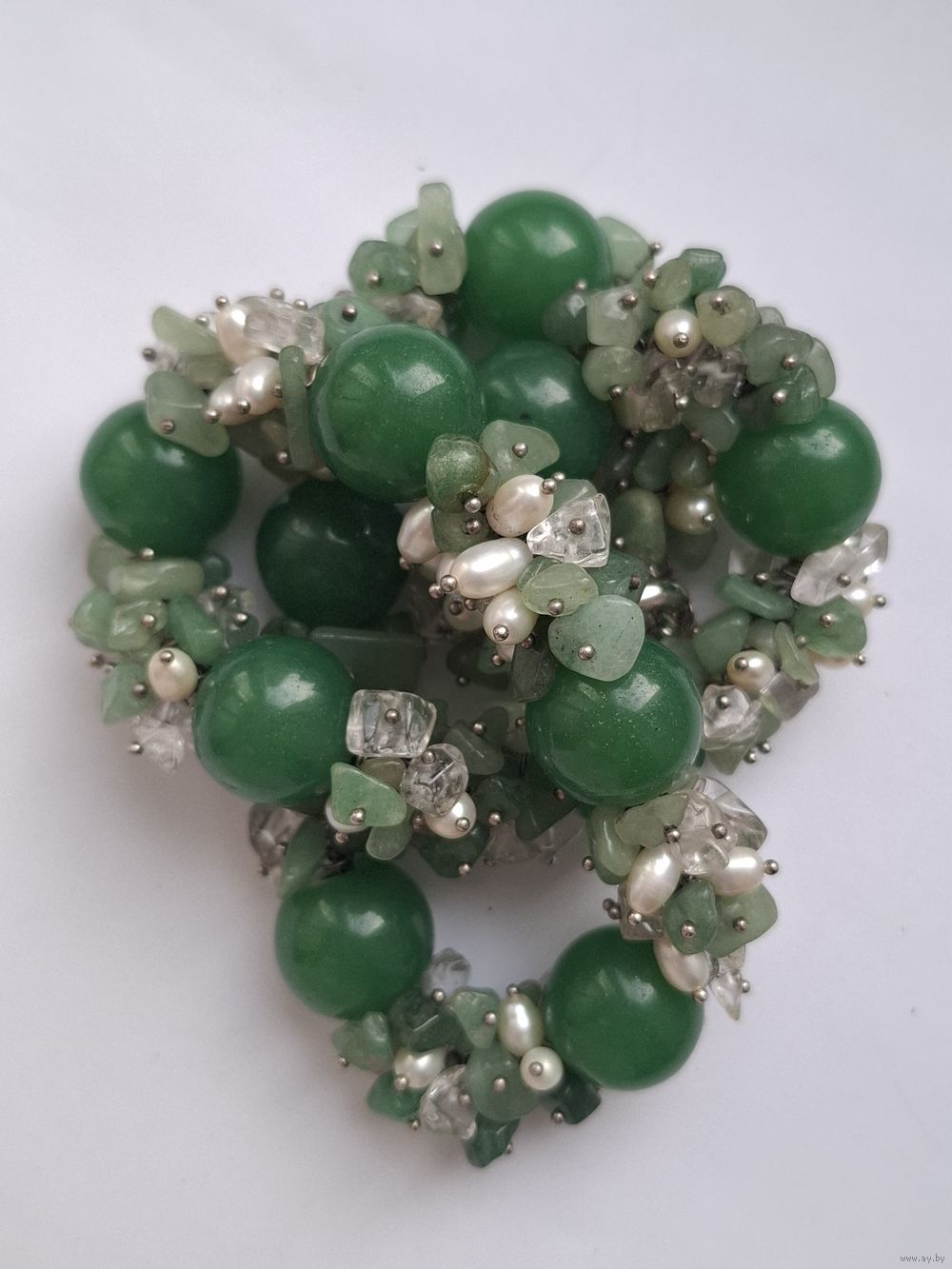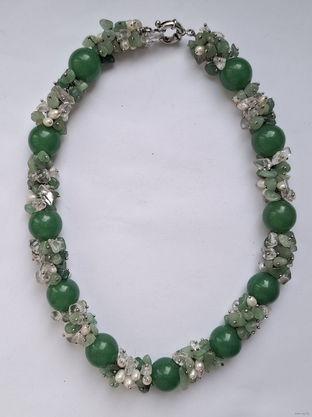 Крупные Колье и браслет. Набор. Нефрит и натуральный жемчуг.