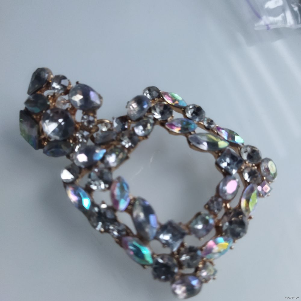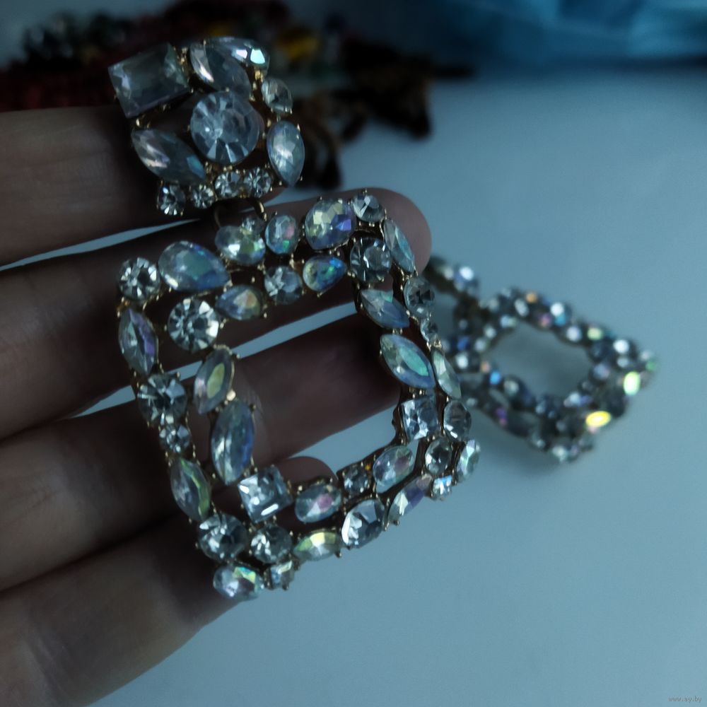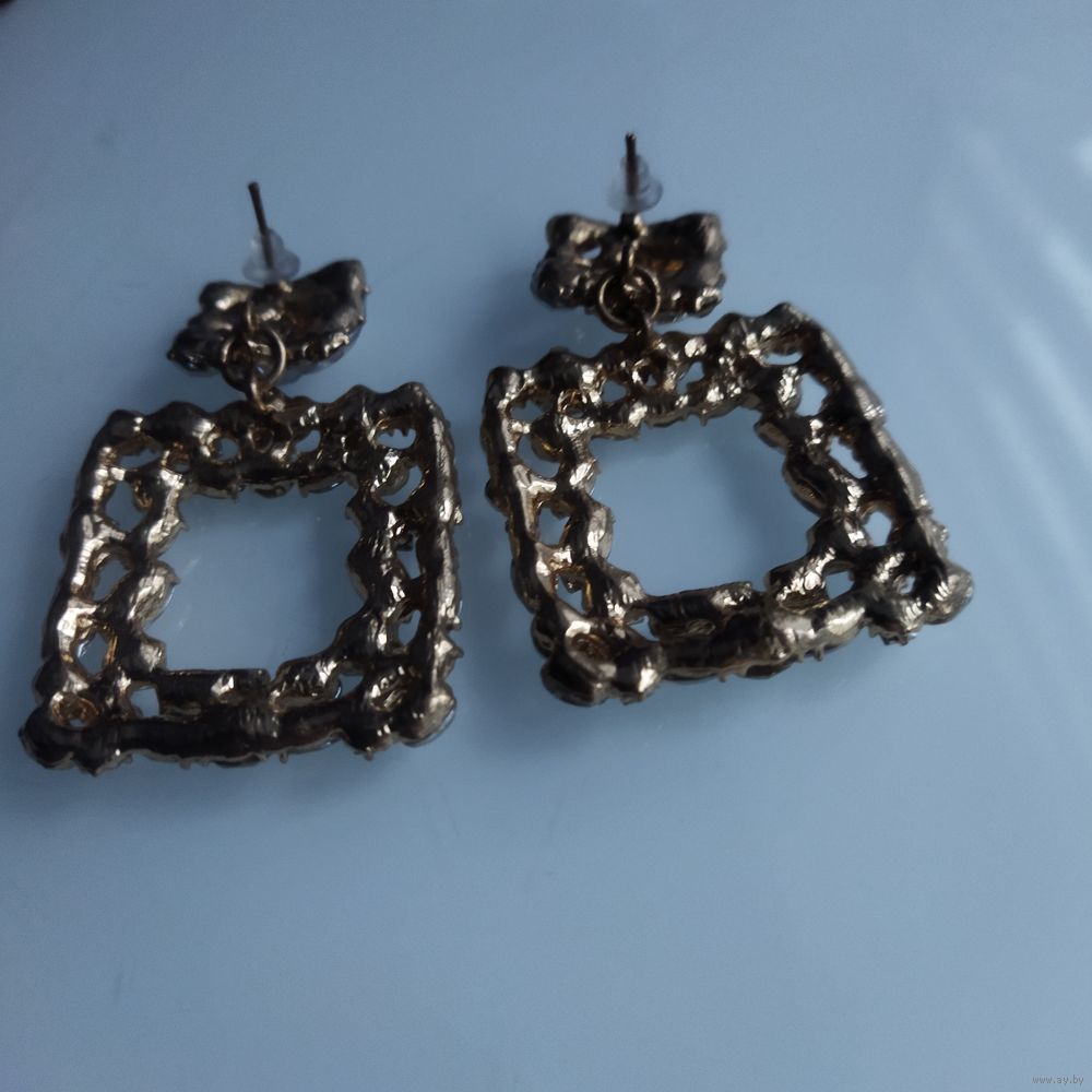 Крупные серьги - пуссеты. Вставки- Аврора Бориалис. Жёлтый металл. 6х4 см.