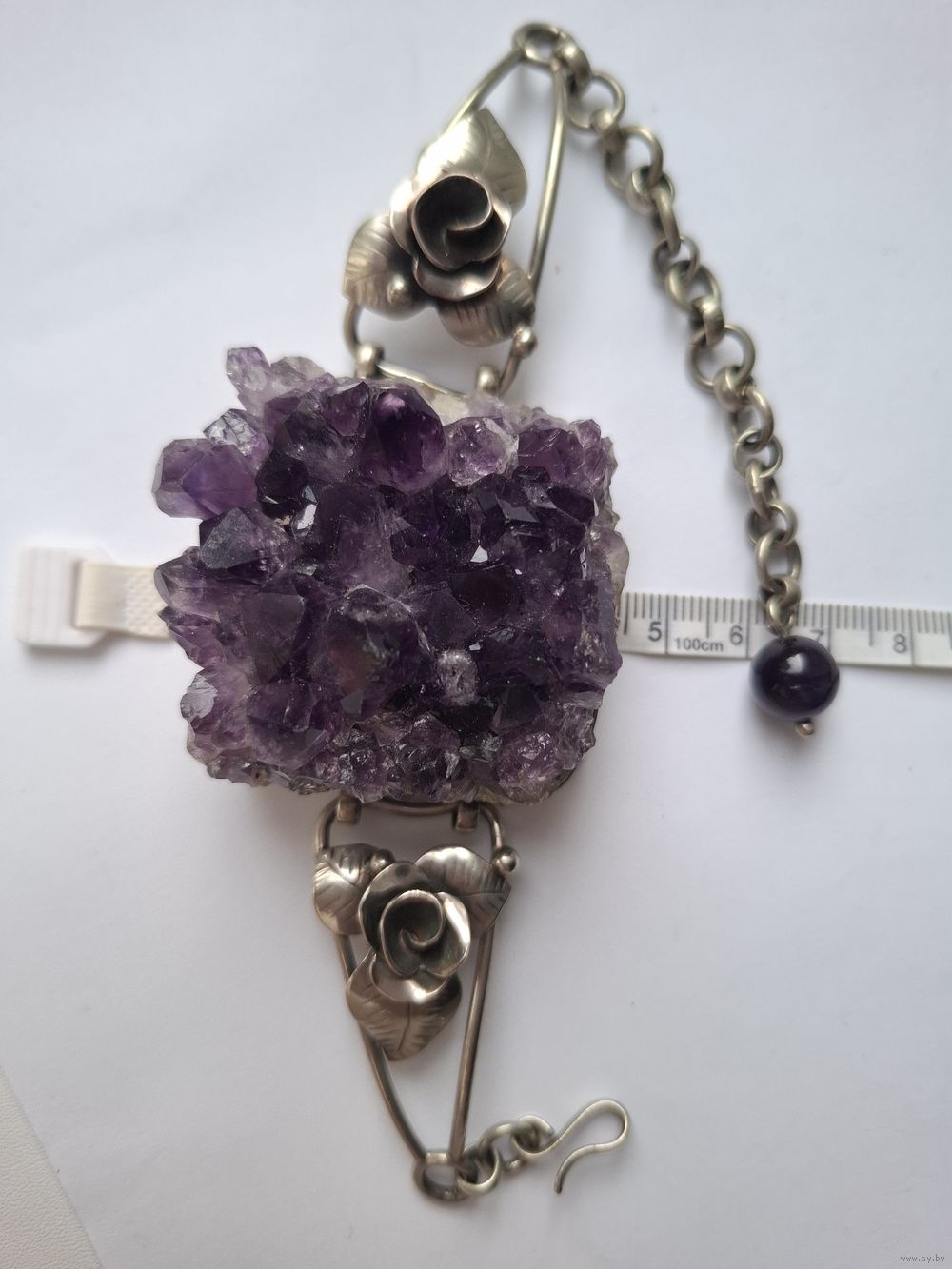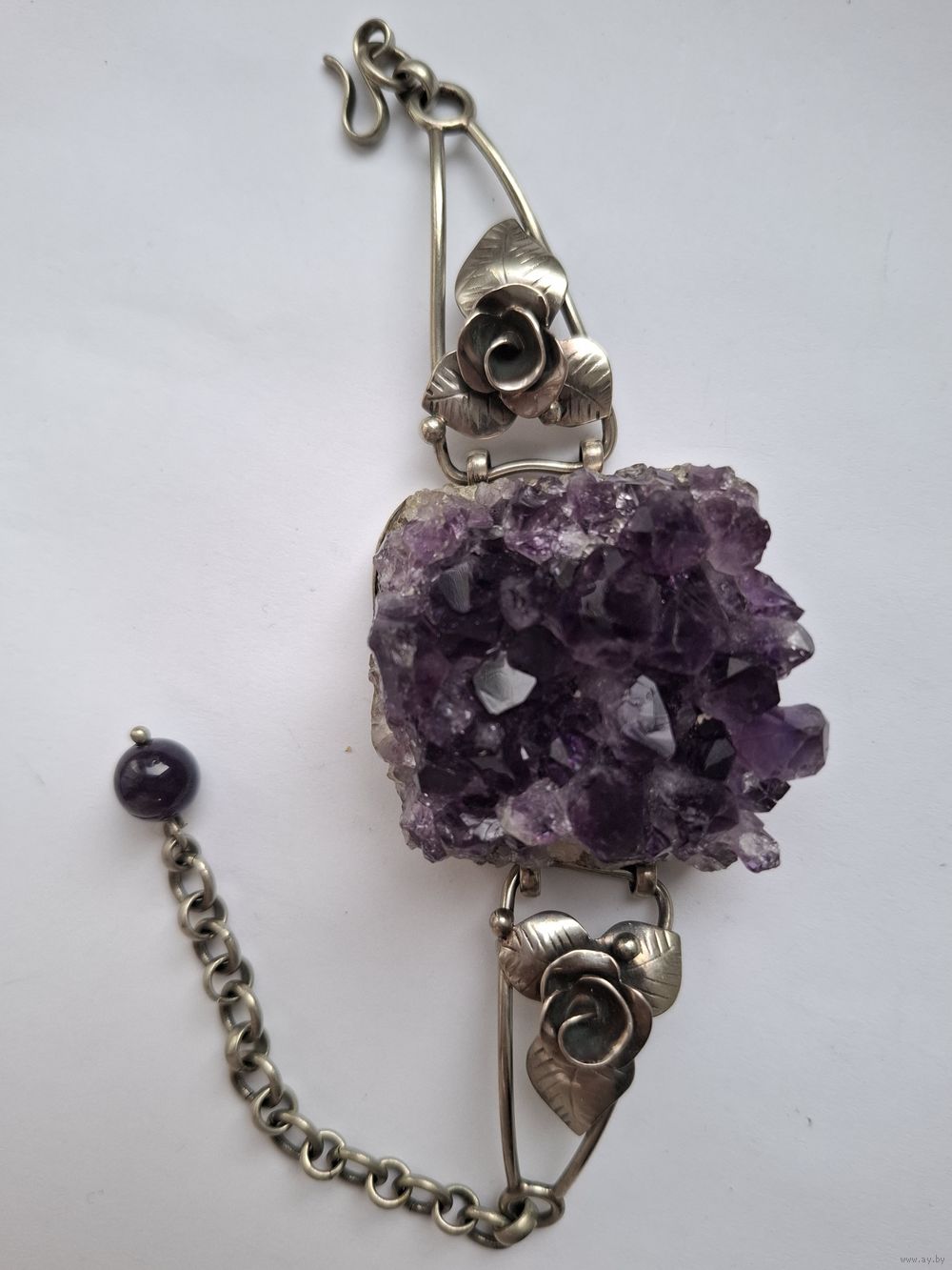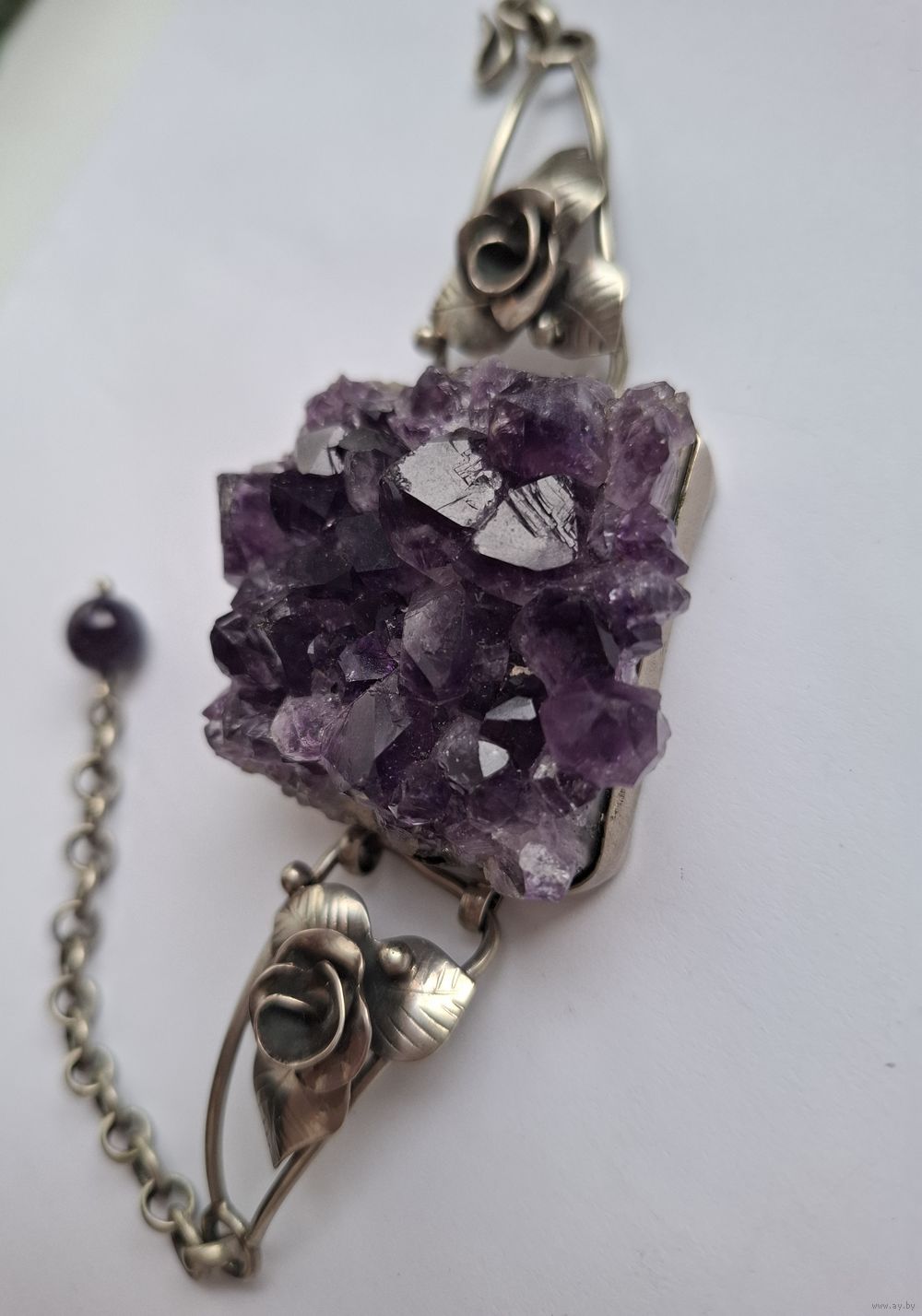 Крупный браслет. Натуральный аметист. Роскошное оформление. Розы.