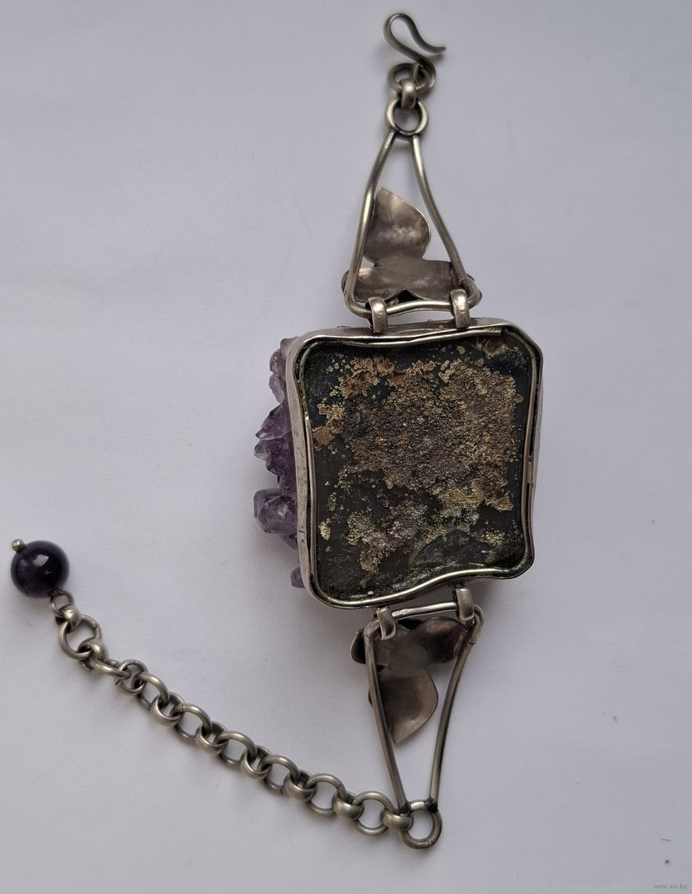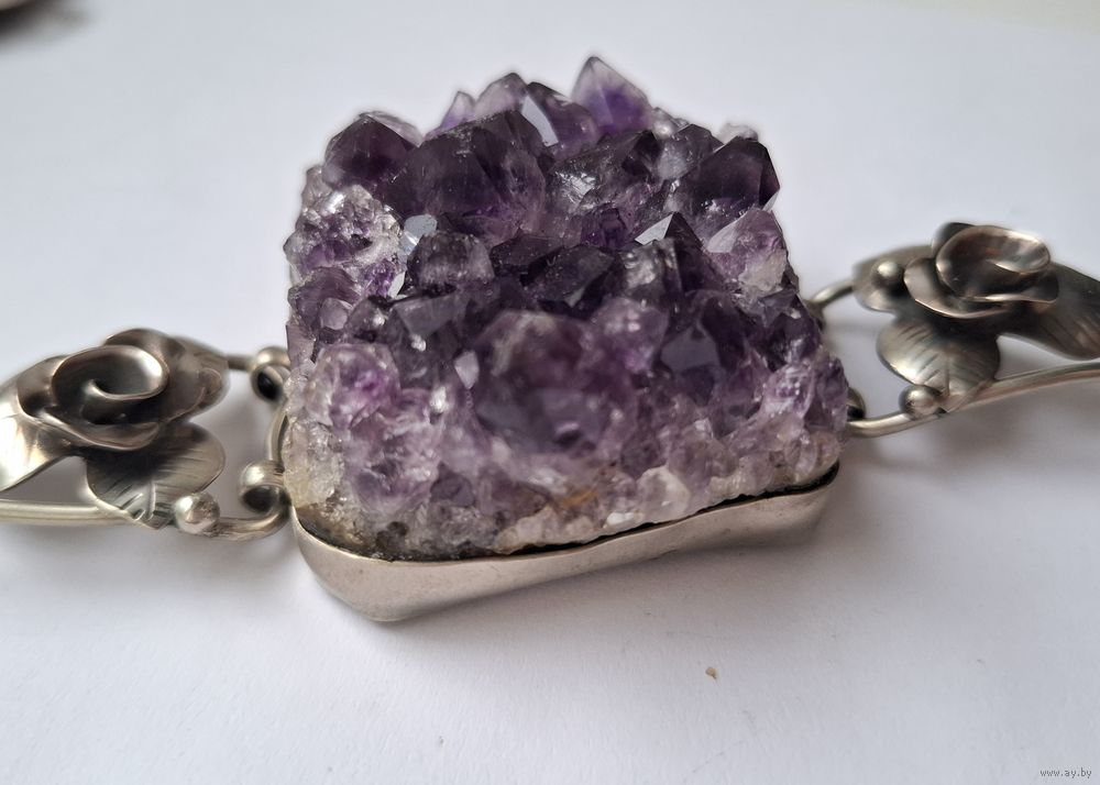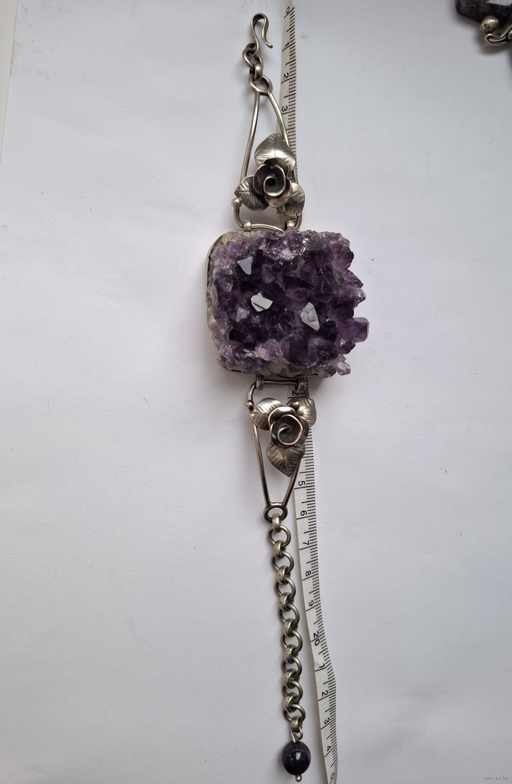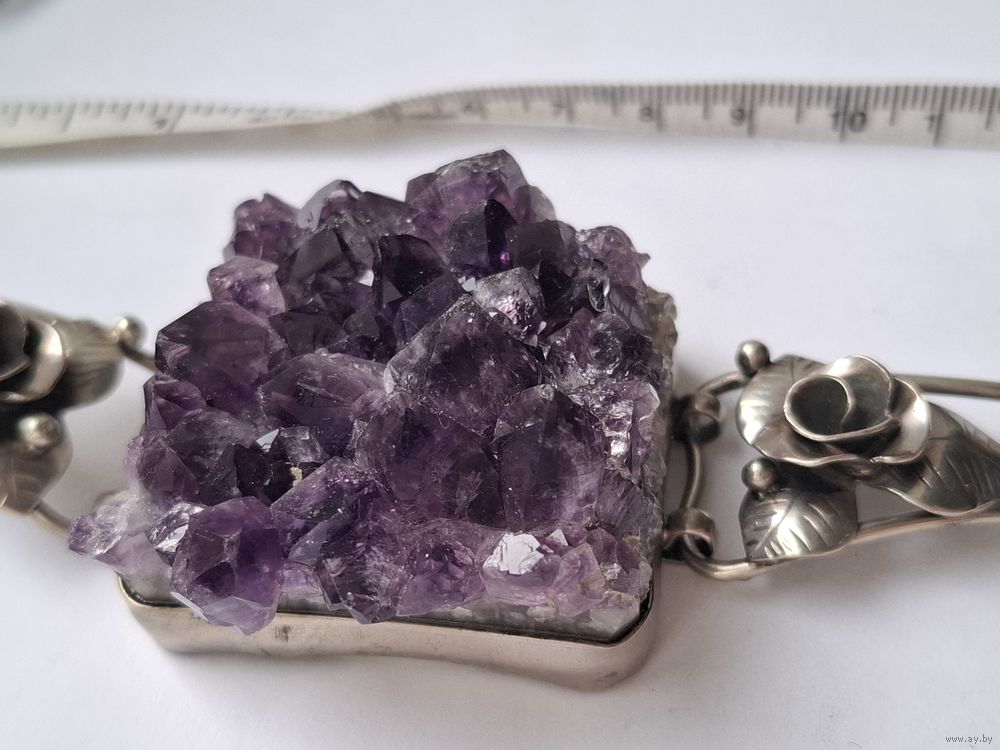 Крупный браслет. Натуральный аметист. Роскошное оформление. Розы.