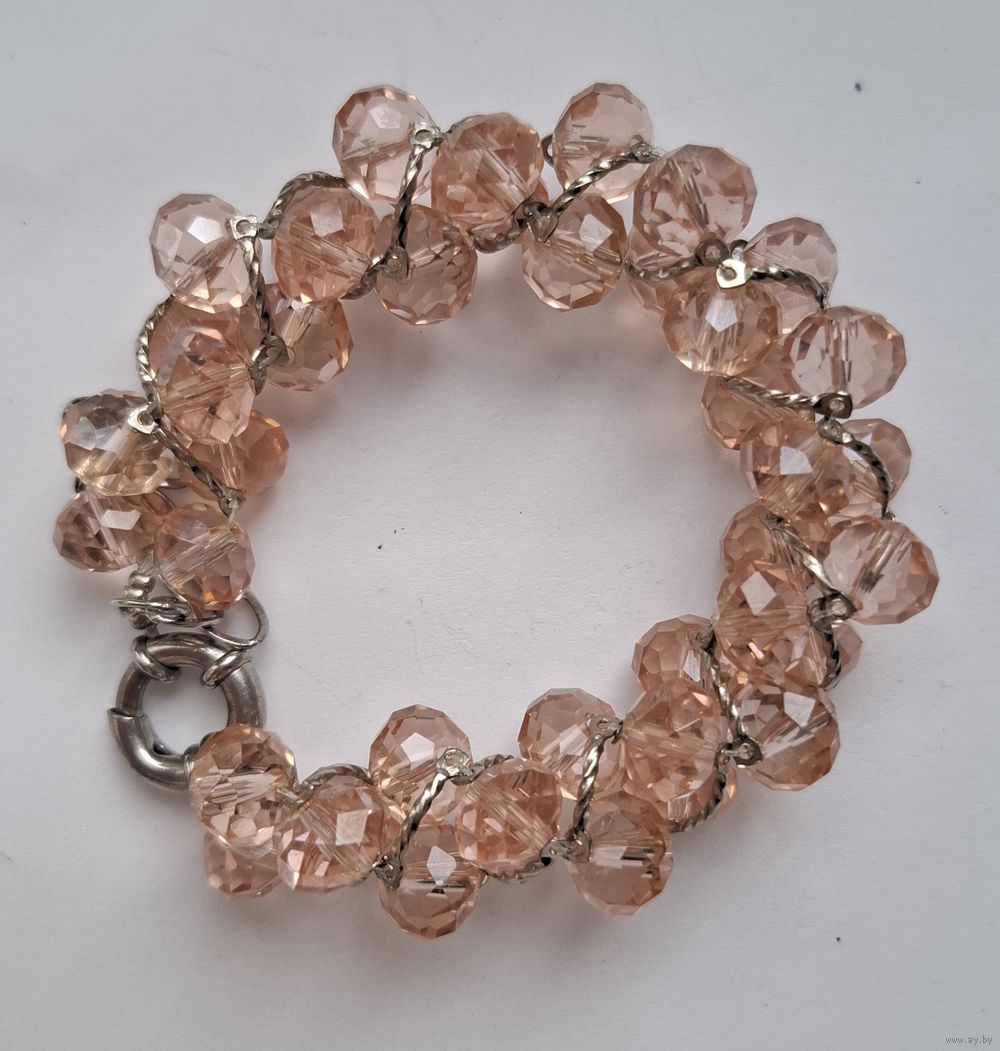 Браслет. Нежно-розовые шарики. Стекло, огранка. Длина 19 см+4 см.
