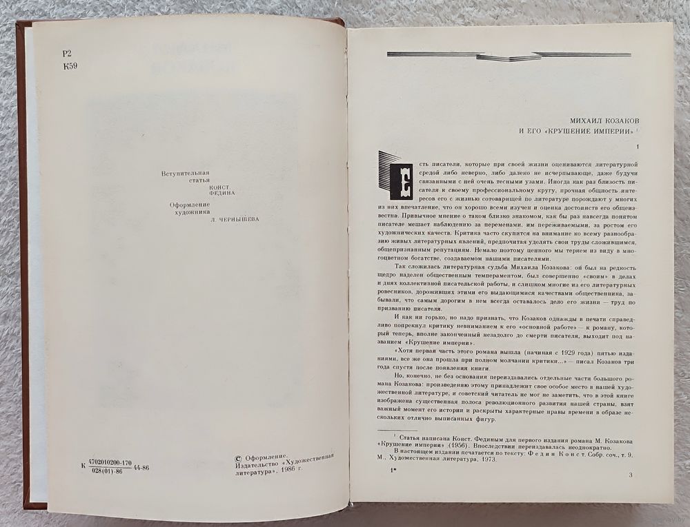 Роман "Крушение империи" Михаила Эммануиловича Козакова (1897 - 1954) посвящен историческим событиям, происходившим в России с 1914 года по апрель 1917. Основная тема романа - участие русской интеллигенции в революционной борьбе народа с царизмом.