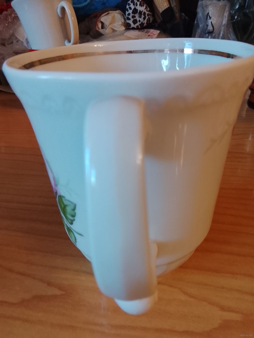 большая кружка, без сколов и трещин ,как новая. фарфор отличного качества. невозможен возврат товара после покупки.