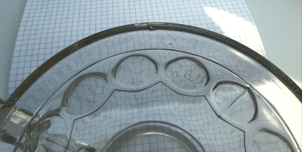 В целом очень хорошее состояние. Трещин нет. Незначительные пошарпанности. На углу ручки небольшой скол, похоже на вскрывшийся пузырёк. Ещё несколько микросколов по ребру ручки.