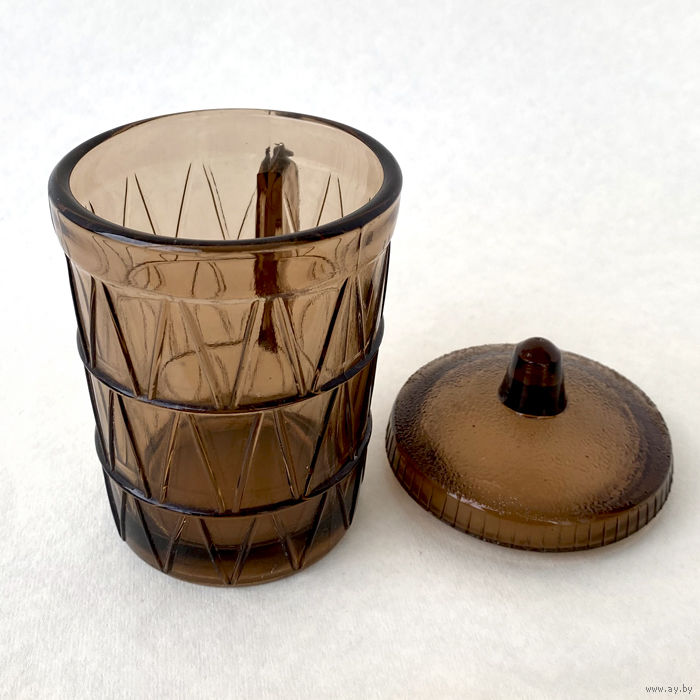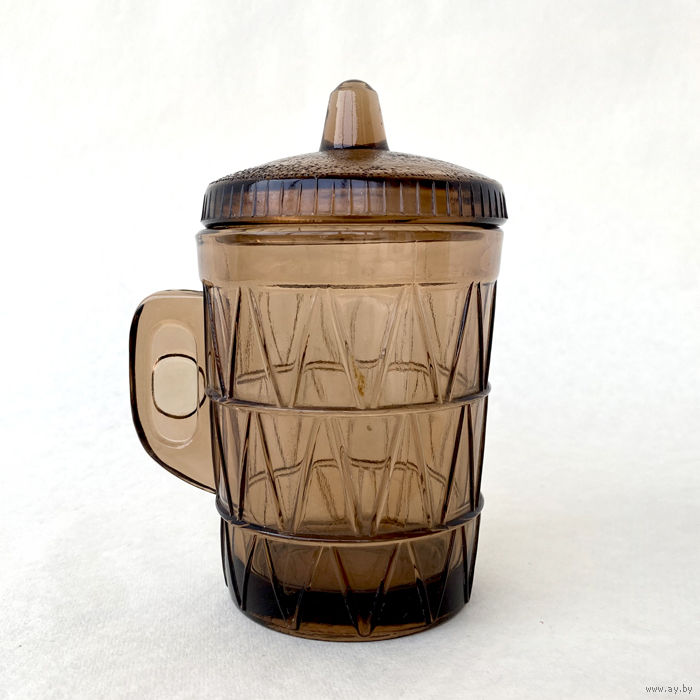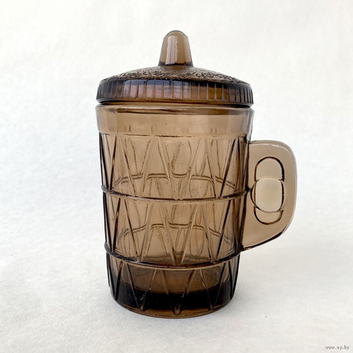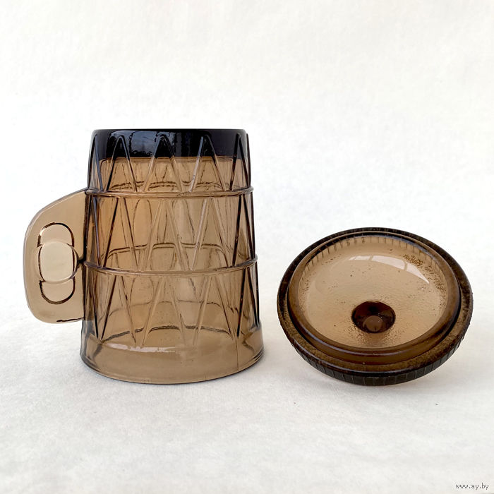 Кружка хренница с крышкой старый Неман, коричневое стекло, клеймо. Внутри стекла на донышке имеется небольшая трещина, рукой не прощупывается, вода не течёт.