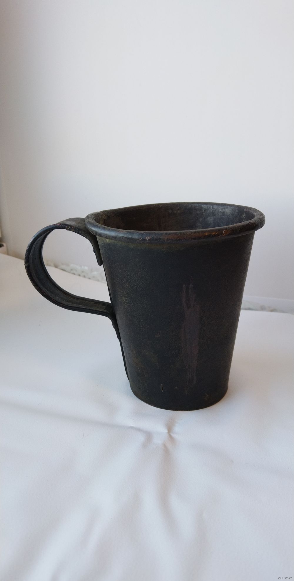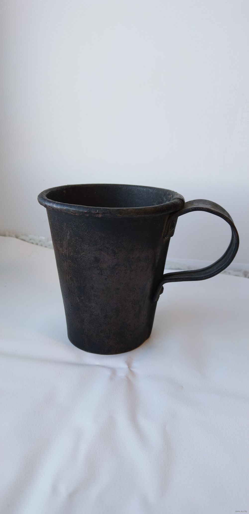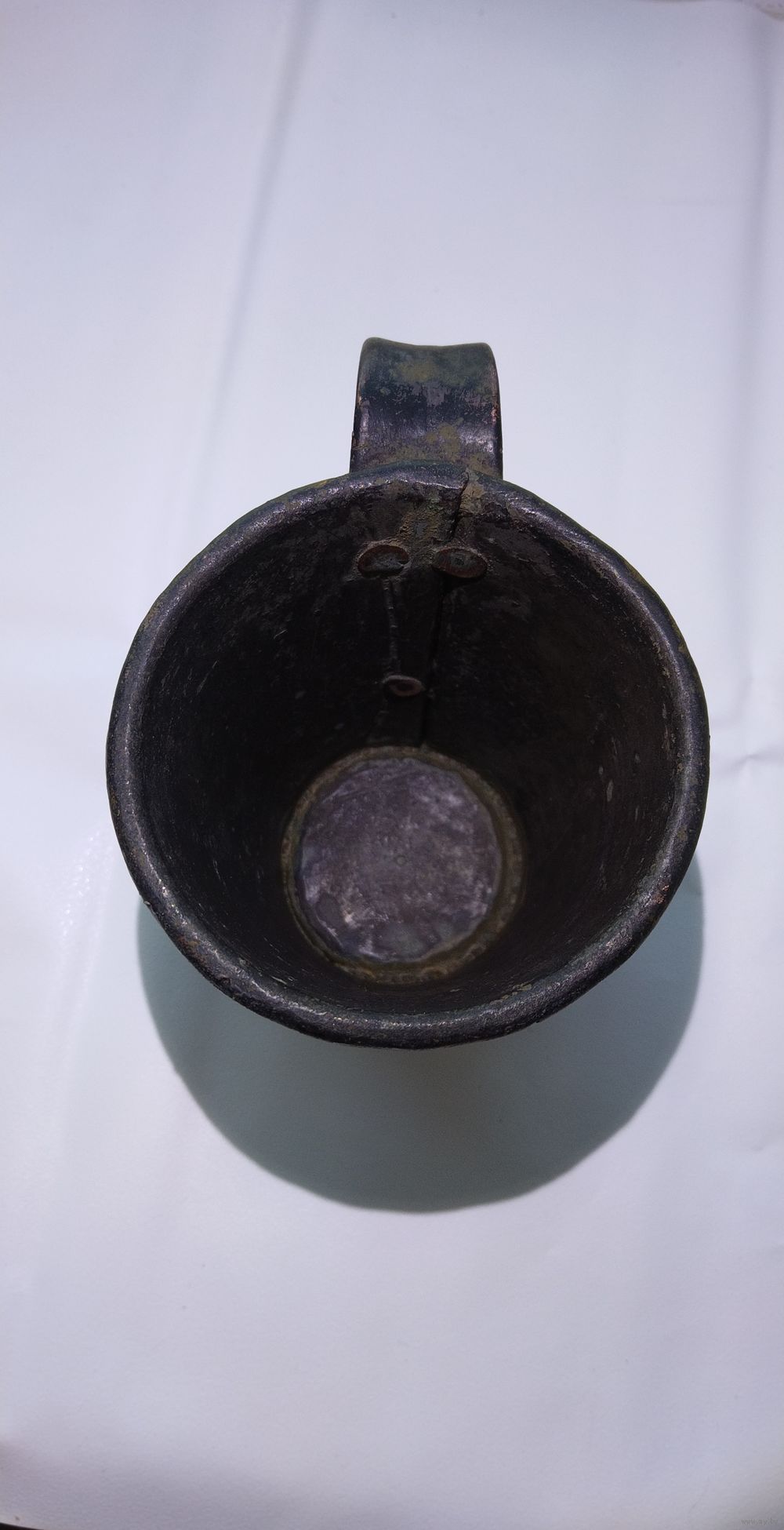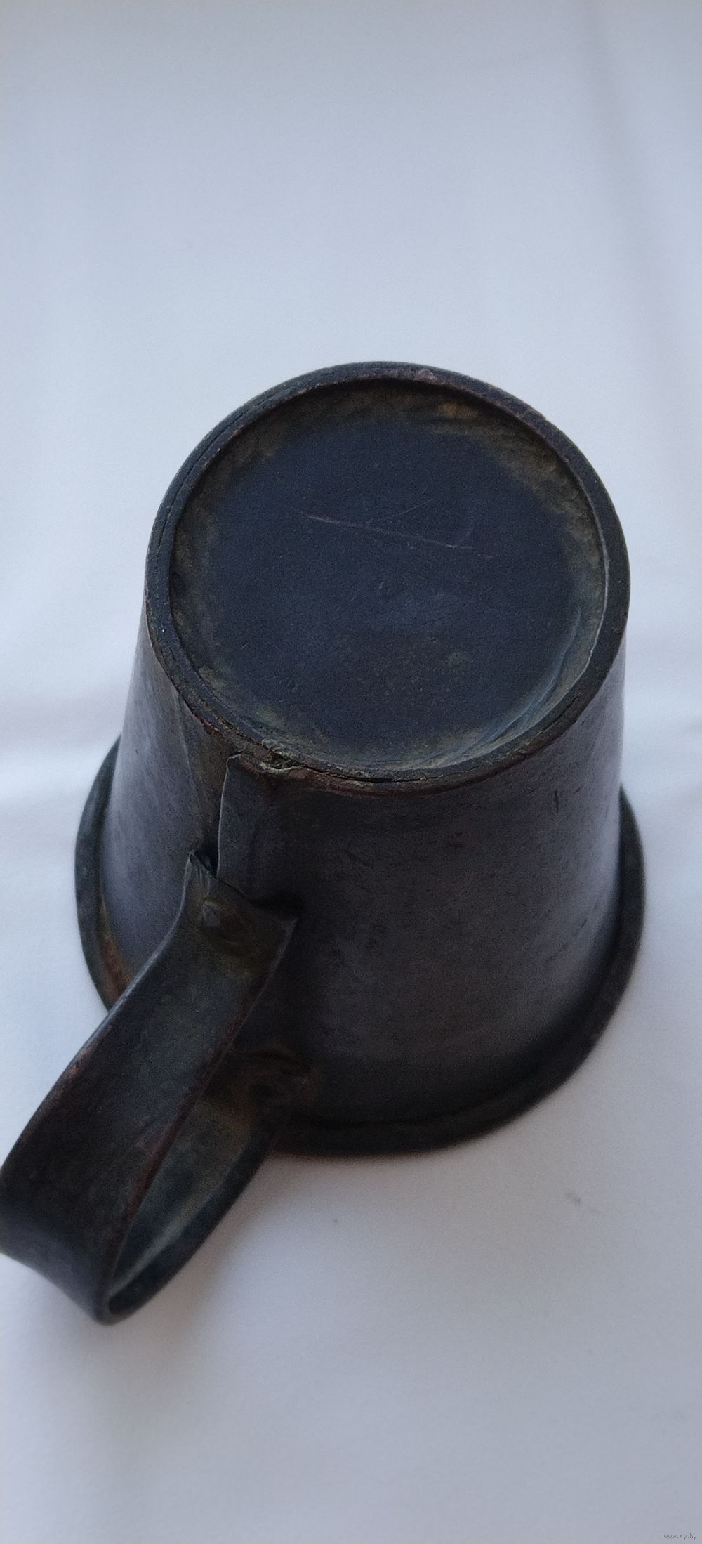 В отличном состоянии. Не чищена. Высота 10,5см. Диаметр верха 9,5см. Диаметр дна 6см. Объем 400мл. На дне остатки лужения. Тяжёлая.