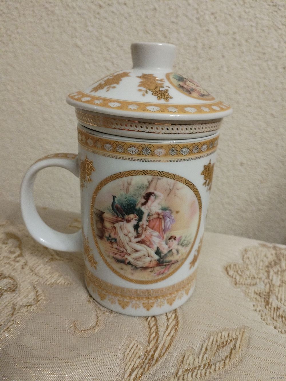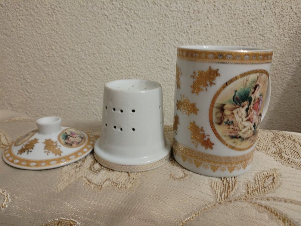 Кружка с заварником и крышечкой. Япония фирма Yamasen. Gold collection